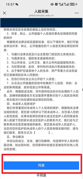 3.登录后,点击“人脸采集”进行人脸采集上传,在采集时会提示安全信息,拉到最底下点击“同意”。