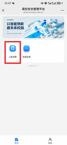 1.打开“智慧汾院”公众号,点击公众号下方“人脸采集”