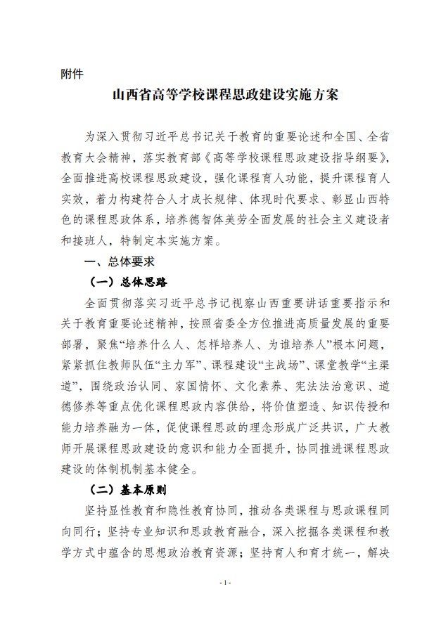 山西省教育厅关于印发《山西省高等学校课程思政建设实施方案》的通知