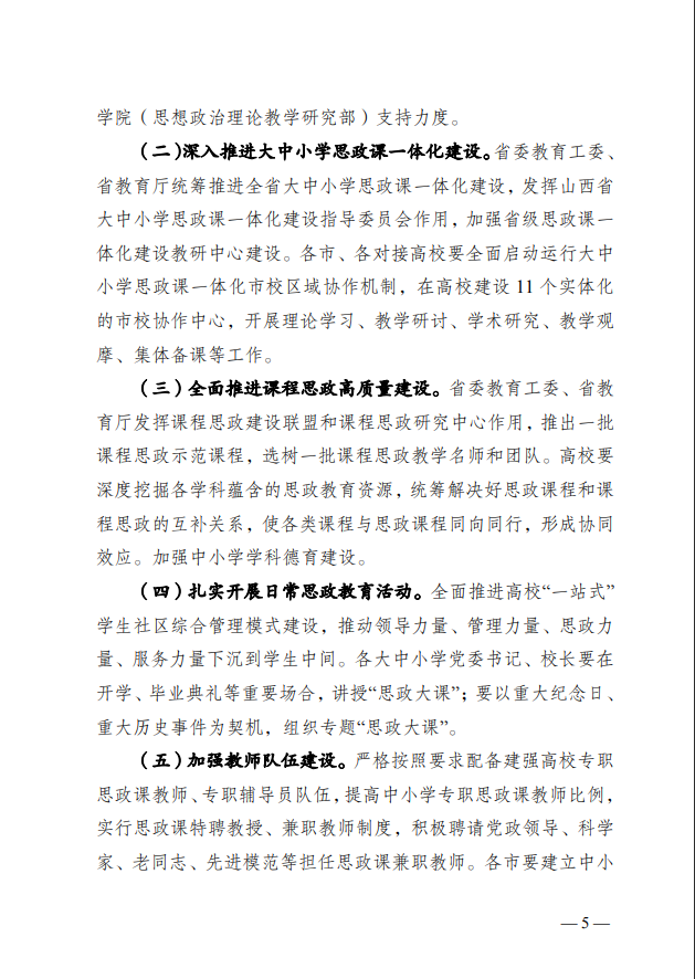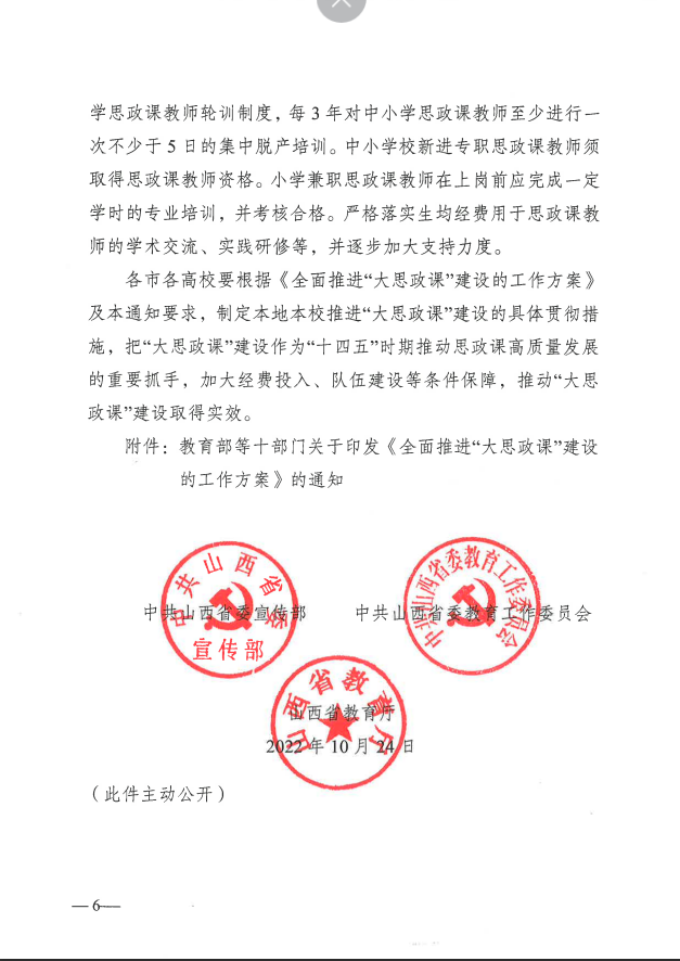 中共山西省委宣传部 中共山西省委教育工作委员会 山西省教育厅关于贯彻落实《全面推进“大思政课”建设的工作方案》的通知