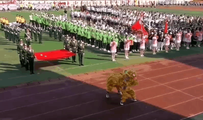 伴随着雄壮的《运动员进行曲》,国旗、校旗、会旗、会徽、宣传、鲜花、彩旗方队依次入场,随后是裁判员、教工和学生代表队。他们迈着铿锵有力的步伐,喊着铿锵有力的口号,精神抖擞地走过主席台。各具特色的方队表演赢得在场领导和师生们的阵阵掌声。入场后,是隆重的升旗仪式,在雄壮的国歌声中,五星红旗冉冉升起;在激昂的校歌声中,校旗和第二十九届田径运动会会旗缓缓升起。