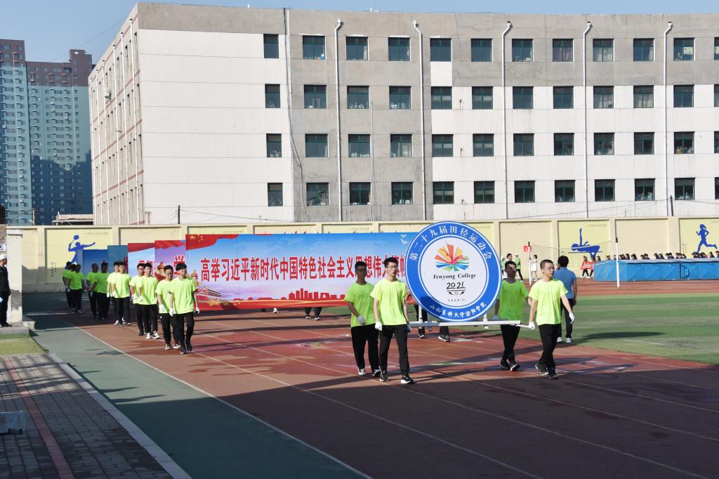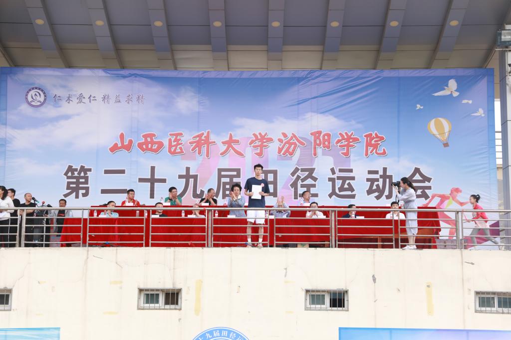 青春点燃梦想,运动铸就辉煌。在建党一百周年之际,山西医科大学汾阳学院第29届田径运动会如期而至。5月21日上午8时,校体育场上彩旗飘扬,在全体师生的热切期待下,校运会开幕式隆重举行。校党委书记薛东平,党委副书记、院长孟小平,山西省汾阳医院党委书记郭任维,校党委副书记任云青,党委委员、纪委书记任朝生,党委委员、副院长韩宝森,党委委员、副院长王建世,党委委员、后勤党总支书记弓鸿飞,党委委员、宣传部部长张益民,党委委员、组织统战部部长李峥,各教学系部党政领导及相关职能部门负责人,全校师生参加了开幕式。党委委员、副院长陈振文主持了开幕式。