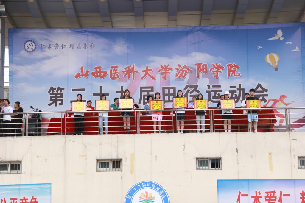 5月22日下午5时40分,我校第二十九届田径运动会举行了闭幕式,校领导、党委委员、各教学系部党政领导及相关职能部门负责人,全校师生参加了闭幕式。党委委员、副院长陈振文主持了闭幕式。本届运动会总裁判长邢月丽宣布了比赛成绩,校工会主席葛永文宣布了教工组组织奖及精神文明队获奖名单,校学生工作部(处)部(处)宣布了学生组组织奖及精神文明队获奖名单和开幕式文体表演奖及学生团体操编导奖获奖名单。主席台就座的校领导、党委委员为获奖者颁了奖。