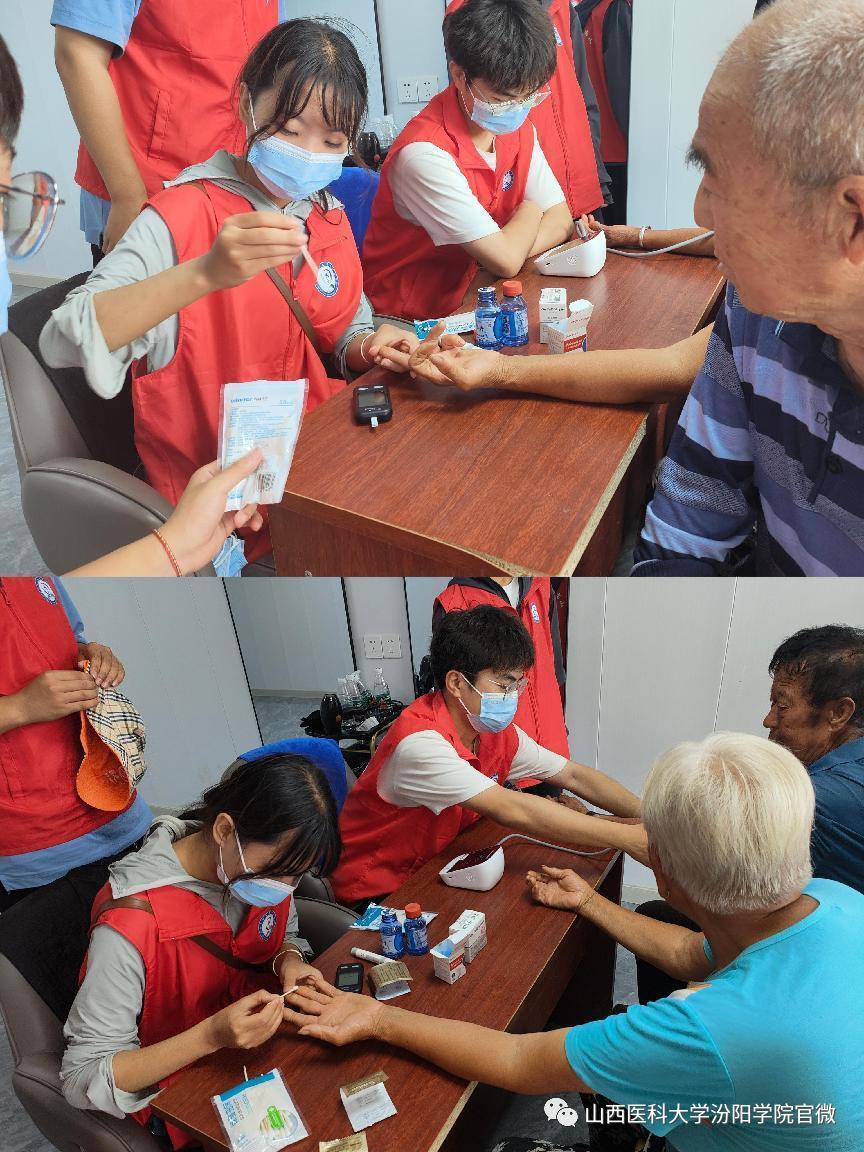 7月11日和12日上午,同学们分别在交口社区大院和葫芦把村开展健康检测活动,为村民测量血压和血糖,将学校所学专业知识应用于实践,回馈家乡。