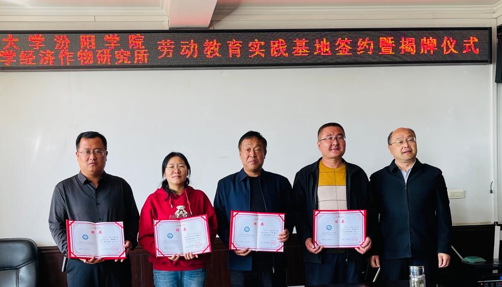 10月16日,校党委委员、副院长陈振文,教务处处长魏建宏等一行来到山西农业大学经济作物研究所劳动实践基地,与山西农业大学经济作物研究所举行了我校劳动教育实践基地签约和挂牌仪式。陈振文副院长为9名兼职教师颁发了聘书。陈振文副院长希望,双方今后能进一步加大合作力度,根据国家人才培养需求、遵循高等教育教学规律,坚持立德树人根本任务,共同构建劳动教育体系,建立劳动实践育人长效机制,扩展劳动教育内涵,提高以劳育德成效,共同培养堪当强国建设、民族复兴重任的时代新人贡献力量。