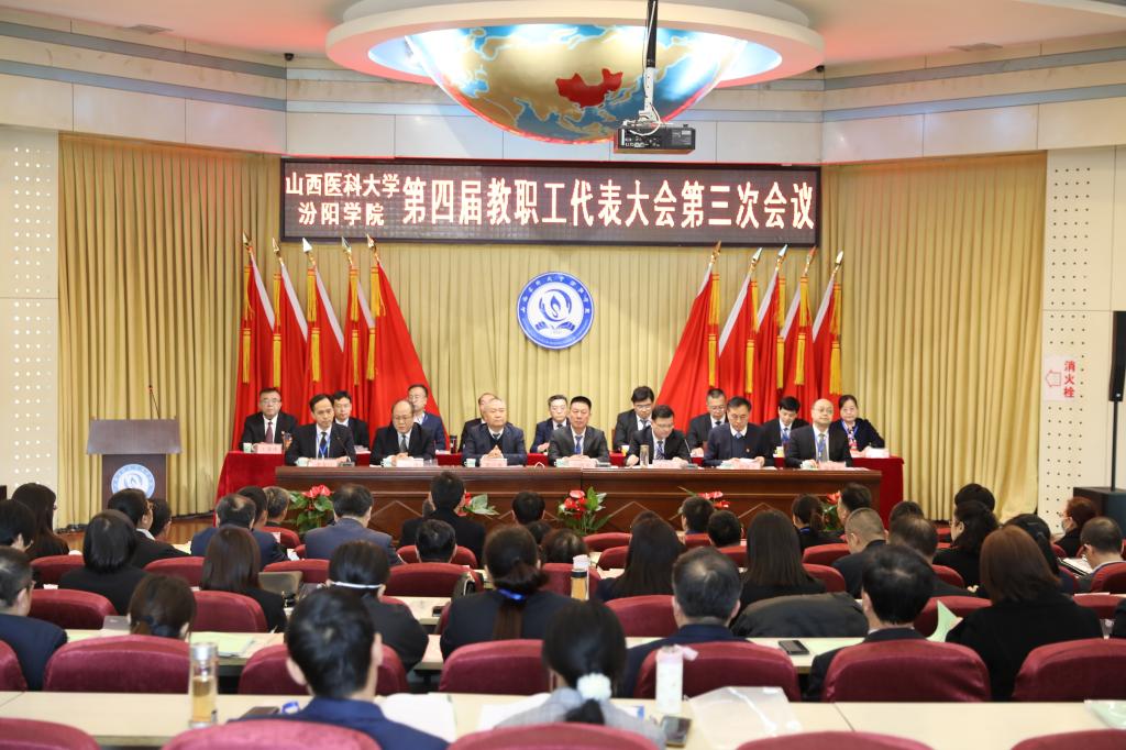 3月3日,我校第四届教职工代表大会第三次会议在学术报告厅胜利召开。校党委书记闫敬来,党委副书记、院长孟小平,党委委员、纪委书记尹锡昊,党委委员、副院长陈振文、李荣江出席会议。山西省汾阳医院党委书记郭任维,党委副书记、院长郭建平,工会主席赵卫平应邀出席会议。我校124名正式代表、22名列席代表参加会议。