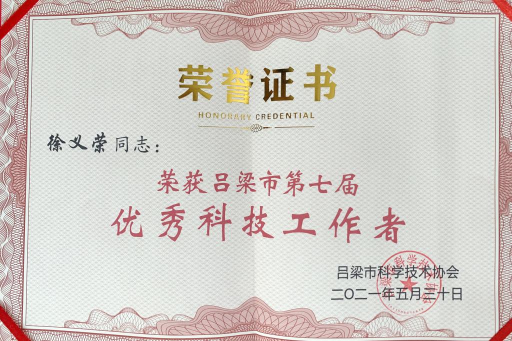 2021年是中国共产党成立100周年,是实施“十四五”规划、开启全面建设社会主义现代化国家新征程的开局之年。为深入贯彻落实习近平总书记视察山西重要讲话重要指示和省委“四为四高两同步”总体部署要求,助力全市聚焦“六新”突破、打造“九大基地”的奋斗目标,吕梁市科协面向全市基层一线选树优秀科技工作者先进典型,我校基础医学部徐义荣老师荣获 “吕梁市优秀科技工作者”荣誉称号。