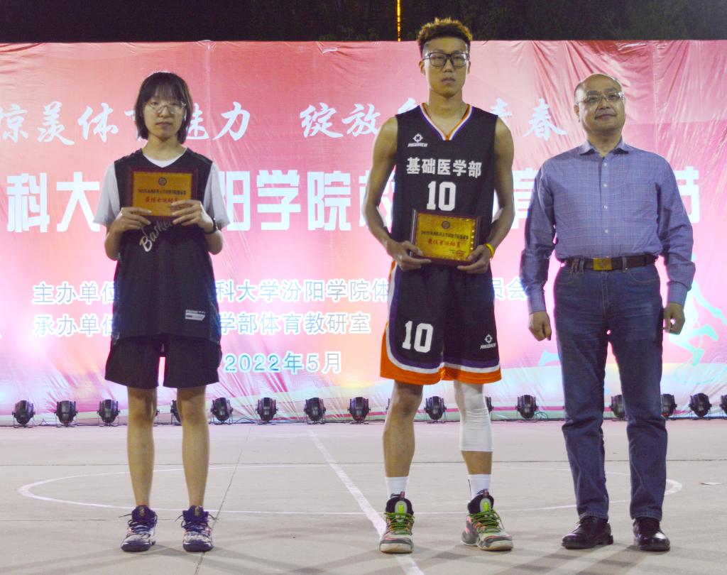 党委书记闫敬来,党委副书记、院长孟小平为篮球比赛一等奖班级颁奖