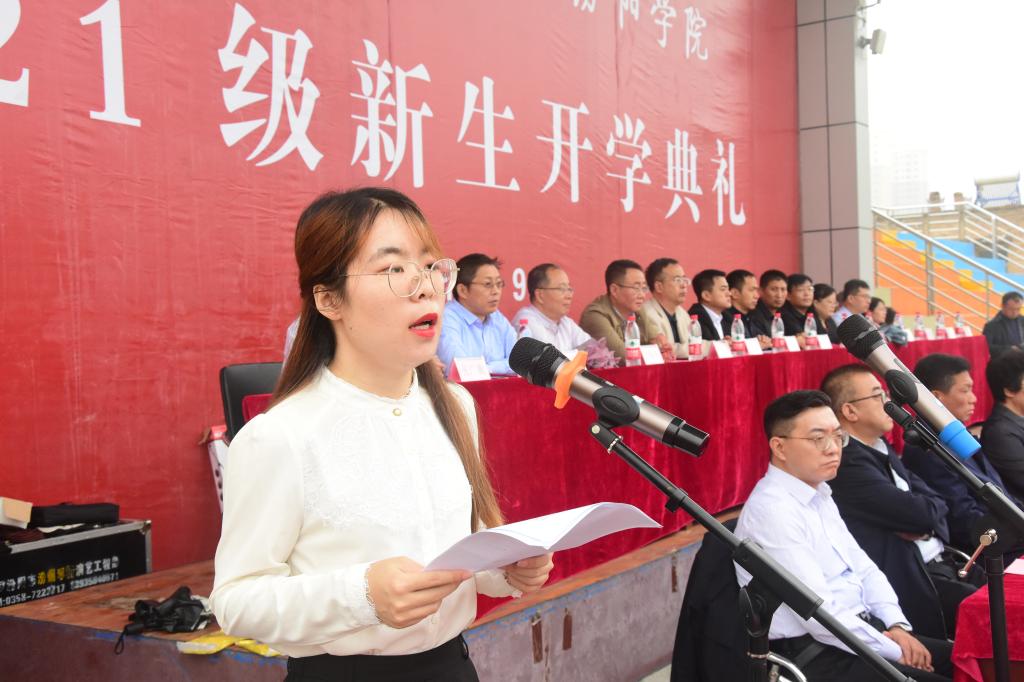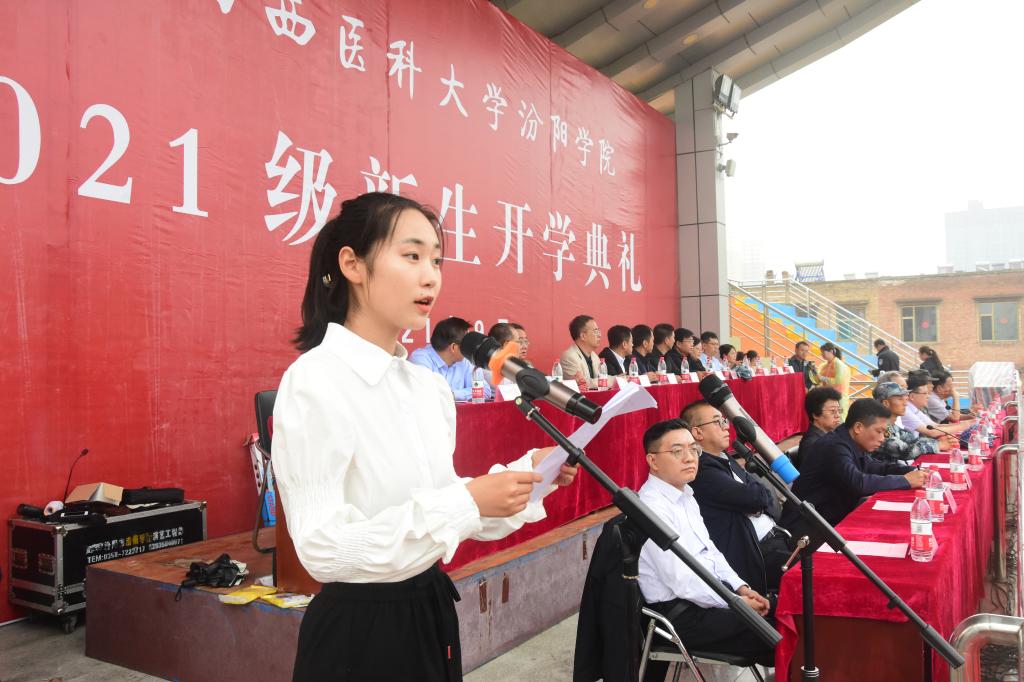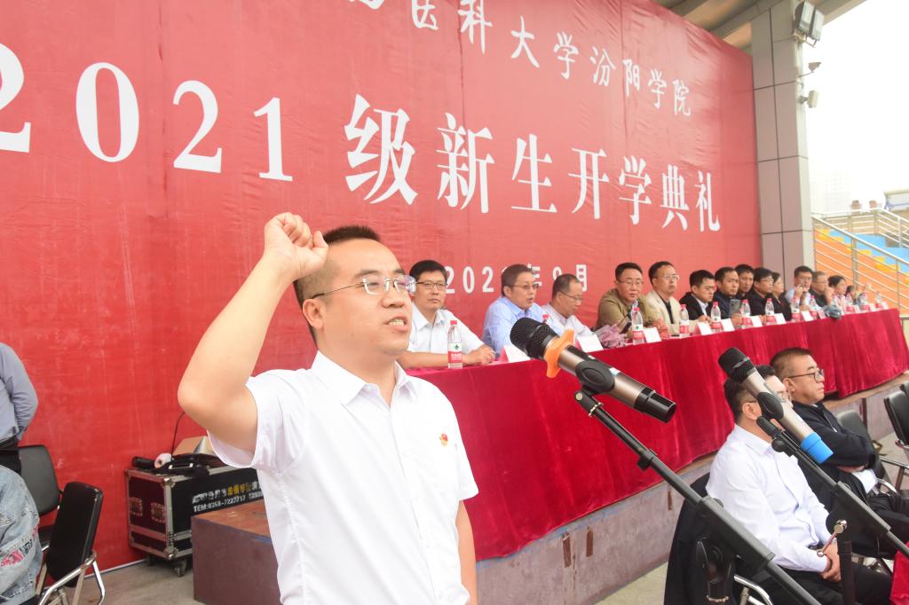 9月18日上午,我校在田径操场隆重举行了2021级新生开学典礼。汾阳市委常委、汾阳市武装部部长韩虎,中国人民解放军某部副营长、吕梁市民兵集训营连长任志刚,我校党委书记薛东平,党委副书记、院长孟小平,党委副书记任云青,党委委员、纪委书记任朝生,党委委员、副院长韩宝森,党委委员、副院长王建世,党委委员王秉泽、弓鸿飞、张益民、李峥及学生工作部(处)、武装部(保卫处)、团委、教务处负责人,各教学系部党政负责人,2021级全体新生班班主任、辅导员和2021级全体新生参加了开学典礼。党委书记薛东平主持了开学典礼。