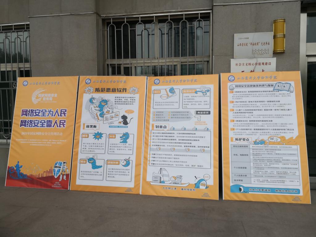 为深入贯彻落实习近平总书记关于网络强国的重要思想和习近平总书记对网络宣传工作“四个坚持”的重要指示,提高师生网络安全意识,营造清朗网络环境。根据山西省教育厅《山西省教育厅关于开展好2021年国家网络安全宣传周有关活动的通知》(晋教政函〔2021〕23 号)要求,我校于10月11日至17日开展了主题为“网络安全为人民,网络安全靠人民”的2021年网络安全宣传周系列活动。
