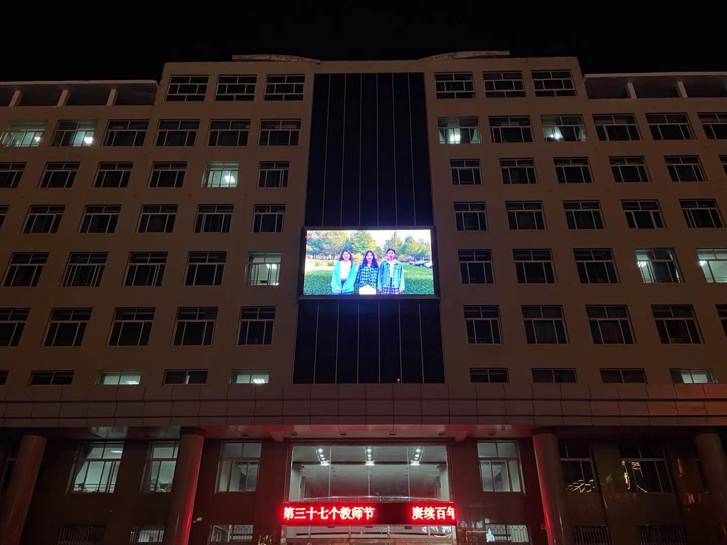 在第37个教师节到来之际,养正楼LED电子屏以字幕滚动的方式,传递出今年教师节的主题:赓续百年初心,担当育人使命。我校学生积极开展“为教师亮灯”视频祝福公益活动。夜幕降临,同学们点亮手机闪光灯,深情歌唱“夜空中最亮的星”、“万万千千”、“微微”等歌曲,表达对老师们的祝福和感激之情。在万万千千个成长的日夜里,无数的老师们如同微微星光,陪伴我们朝朝暮暮,指引着我们在迷茫中寻找方向,激励着我们点燃人生的梦想。教师节当晚8点至9点,养正楼大屏幕循环播放“为教师亮灯”祝福视频。屏幕中摇曳的灯光和动人的音乐为我校全体老师送出了暖暖的祝福情。