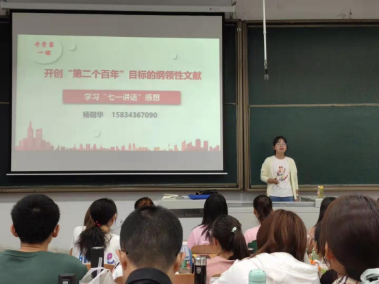 老师们带领大家深入学习习近平总书记在庆祝中国共产党成立100周年大会上的重要讲话精神,共同领悟“七一”重要讲话的重大意义,深入理解其中的新思想、新观点和新要求,并期望同学们持续深化学习,吃透精神实质,把握核心要义,把学习“七一”重要讲话精神的成果转化为建功新时代的实际行动,不负总书记的谆谆教导。