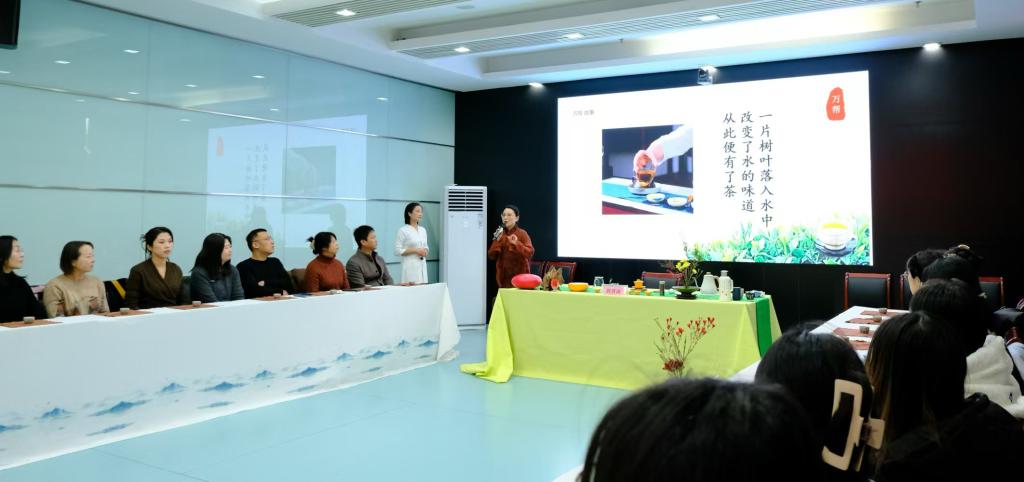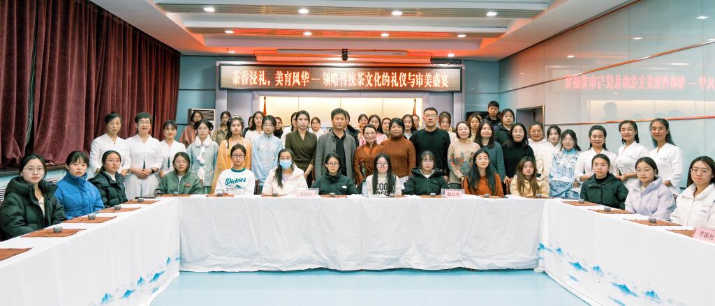 为加强学生美育,感受中华茶文化之美,11月28日,团委美育教研室在养正楼九层会议室开展了美育实践系列活动之领略中华传统茶文化礼仪魅力,邀请国家高级茶艺师、山西省第三届茶艺师大赛十佳茶艺师郭晋涛老师以“茶香浸礼 美育风华”为主题进行主讲。团委、教务处老师及学生社团源启社、书画社全体同学参加了活动。