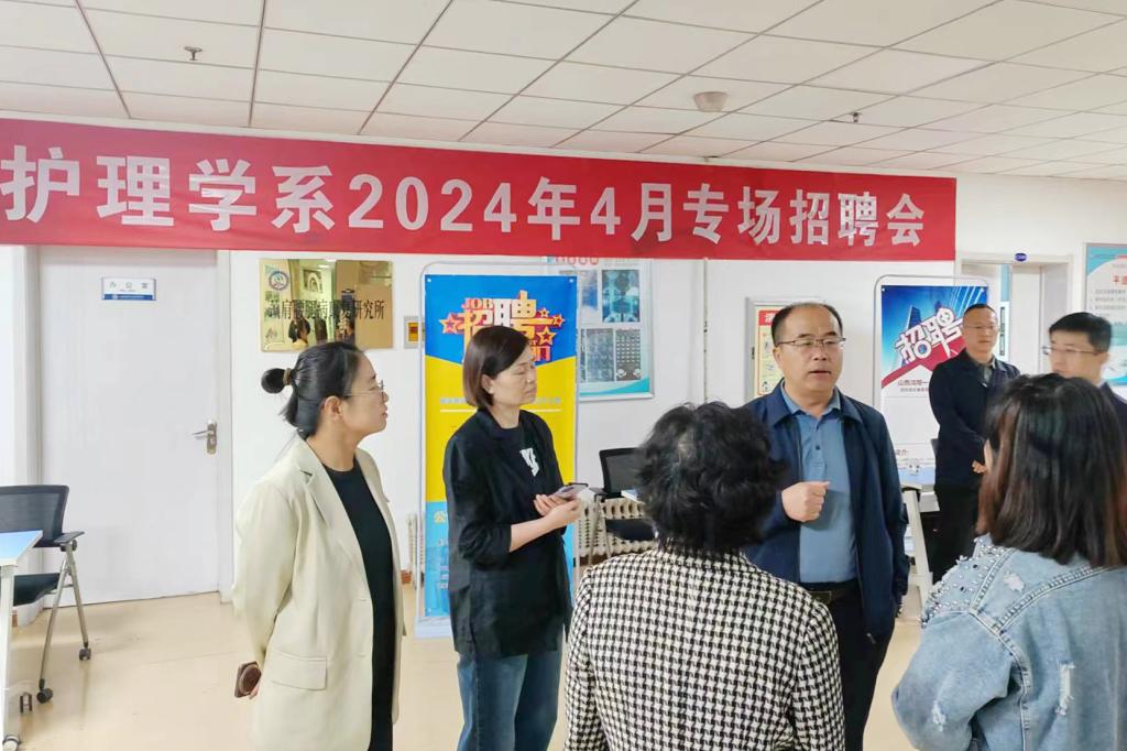 三次专场招聘会分别邀请到北京按摩医院、北京市房山区良乡医院、孝义市中心医院、晋中市太谷区人民医院、阳泉市医养康复医院、介休绵山医院、灵石县仁康医院、一心堂药房、易莱康医疗科技股份有限公司等9家单位来校招聘,岗位以护理、助产为主。
