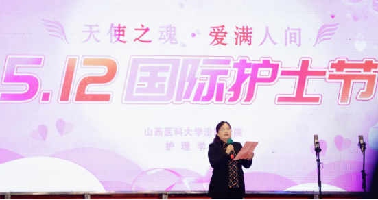 护理学系党总支书记武小莉为文艺汇演致辞。武书记向出席本次活动的各位领导、各位来宾表示热烈的欢迎和衷心的感谢,向辛勤耕耘在护理教育一线的老师们致以亲切的问候和崇高的敬意,向全体同学——未来的“白衣天使”们致以节日的祝贺!武书记殷切地希望同学们只争朝夕、不负韶华,搭载“汾阳护理”这艘百年航船,努力学习,提高职业素养和人文素质,增强责任感和使命感,用扎实的专业知识、娴熟的专业技能以及“尊重生命关爱患者”的专业理念将护理事业发扬光大,让南丁格尔精神焕发新时代的光芒!