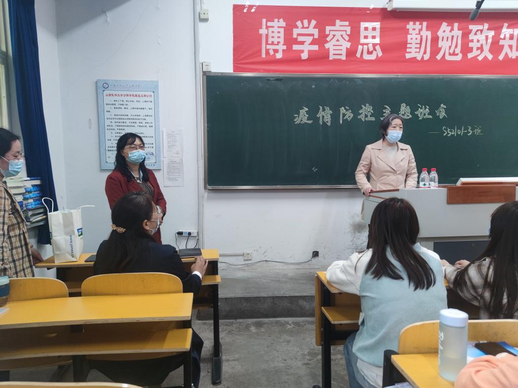 4月9日下午,临床医学系S52101-3班辅导员李美萍、班主任李琰组织召开班级疫情防控主题班会。校系联系班级领导、校党委宣传部副部长双永青老师和医学影像系副主任岳根霞老师莅临指导本次主题班会。