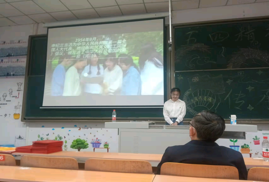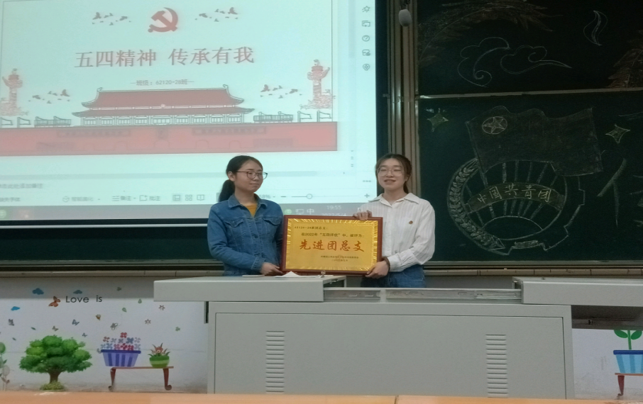 活动由“忆青春”“致青春”“话青春”三部分组成。“忆青春”环节,团总支书记杨雪佳同学为大家讲解了何为五四精神以及五四青年节的来源,带领同学们一起重温入团誓词、高唱共青团歌。各团支部通过100秒短视频以话剧形式讲述了党史上的一个个感人故事。“致青春”环节,王艺嘉和吕琳、孙宇鑫三位同学以《少年中国说》的诗朗诵+歌唱表演,表达了对革命先辈们的敬佩之情。王怡晨、朱书莹、赵敏惠、郭睿思、贾美瑛、武仪婷、熊雨阳、左雅妮、曹艺琳、张梓童十位同学通过画图谱的方式讲述了我校优秀校友何华在平凡的岗位,用坚守、坚持、坚定展现了“全心全意为人民服务”的庄严承诺。“话青春”环节,老师们为此次获得学校2022年“五四评优”表彰的同学们颁发了证书。之后,同学们还观看了由班级团干自导自演拍摄的青春主题的视频,更加坚定了要以青年楷模为榜样,在担当中历练,在尽责中成长的决心。