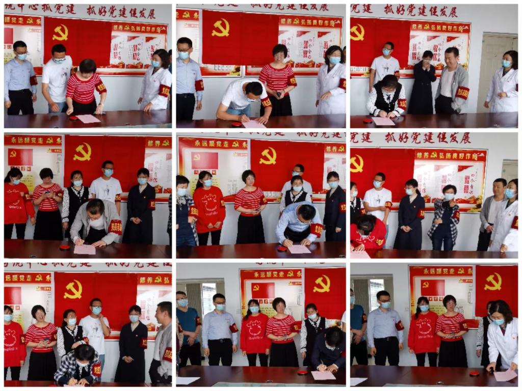 支部组织宣传委员吕雅娟老师带领与会全体党员,面对鲜红的党旗,铿锵坚定地重温入党誓词。宣誓完毕,吕雅娟老师宣读了请战书。一支部党员纷纷表示,要将积极响应党的号召,闻令而动,挺身而出,冲锋到疫情防控的最前线。争先恐后地在请战书上签上了自己地名字,庄严地按上自己的手印。