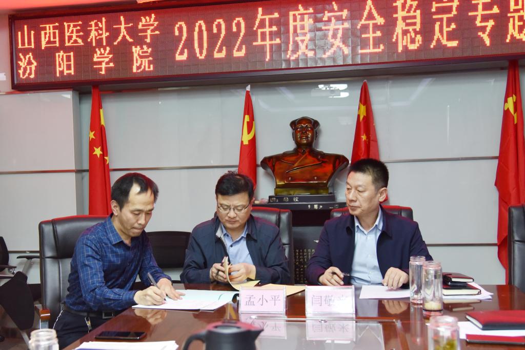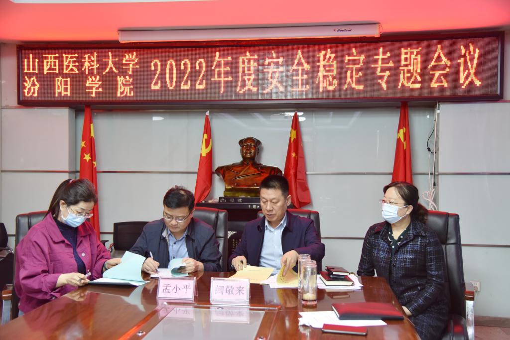 党委书记闫敬来强调要求,一是切实提高政治站位。各级党组织、全体党员干部要深入学习贯彻习近平总书记关于做好党的二十大各项工作重要指示精神,坚决在思想上、政治上、行动上同以习近平同志为核心的党中央保持高度一致;要深入贯彻落实山西省委第十二届四次全体会议精神,自觉扛起政治责任,牢牢守住安全稳定底线。二是全面落实省委防疫情、稳经济、保稳定的工作要求,修订完善各类突发事件的应急处置预案,理顺应急处置机制;全面开展大检查大整治大提升行动,建立台账,查漏补缺,整改落实;深入开展思政教育工作,严格落实意识形态工作责任制,积极开展生命安全教育,及时回应和解决师生的合理诉求,确保校园安全稳定。三是切实做好督查督导问责工作,要进一步完善重点工作督导体制机制,严明工作纪律,严格追责问责;各级领导干部要真正发挥领头雁作用,广大党员要充分发挥先锋模范作用,做出表率,做好示范,为迎接党的二十大胜利召开营造安全稳定的环境。