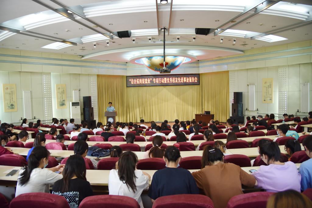 最后,在我校学术报告厅举行了“访企拓岗促就业”专项行动暨优秀校友先进事迹报告会。谭凤梅、刘海斌、赵红林、任云峰四位基层医疗单位主要领导、我校校友,分别从不同的角度,解读了当前医疗卫生事业改革的相关政策,重点介绍了县级医疗单位的发展前景,指出了医学生的就业方向与重点;介绍了本单位的基本情况及人才需求状况,表达了招才引智、求贤若渴的心情;介绍了自己毕业后扎根基层的奋斗历程。
