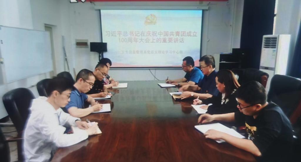卫生信息管理系党总支书记张烨领学了习近平总书记在庆祝中国共产主义青年团成立100周年大会上的重要讲话精神。与会人员围绕习近平总书记在庆祝中国共产主义青年团成立100周年大会上的重要讲话精神,结合学校和自身工作实际分享了心得与感悟。