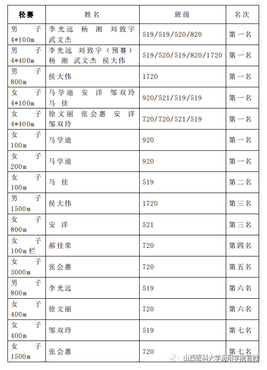 附:我校参加山西省第二十二届大中学生田径运动会本科组代表团名单