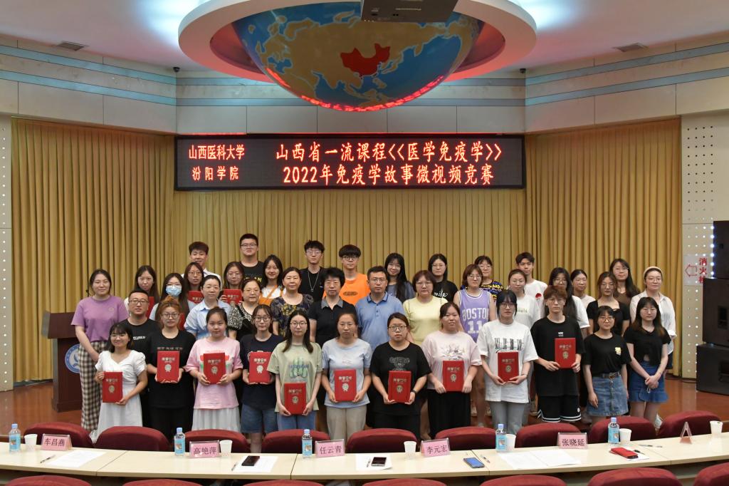 本学期,我校在授课班级2020级临床医学和医学影像学专业中开展了省级一流课程《医学免疫学》“学免疫,小故事,大道理”的免疫故事微视频竞赛。6月8日,竞赛对作品进行了评比。校党委副书记、课程团队成员任云青教授,医学检验系主任高艳萍教授,医学检验系党总支书记李元宏副教授,医学检验系副主任张晓延副教授及课程团队车昌燕副教授、游荷花讲师担任教师评委,临床医学专业520班和医学影像专业820班的7位同学担任学生评委,两个班的同学观赛。