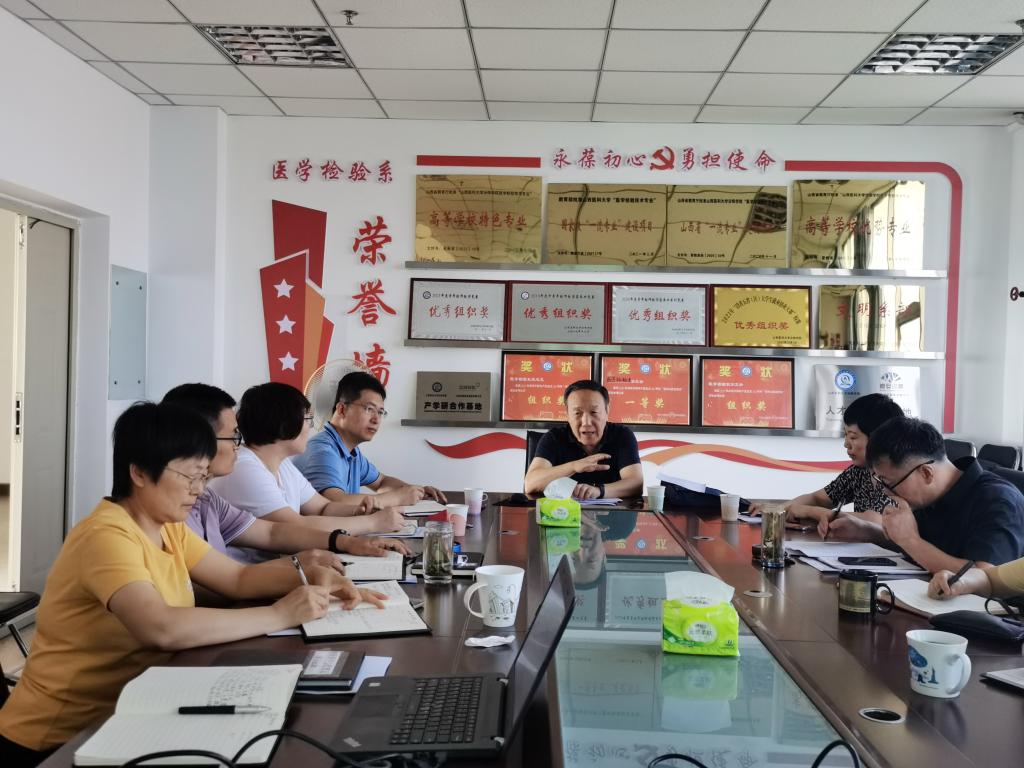 7月23日上午8时30分,医学检验系在养正楼八层会议室组织召开了“国家级一流本科专业建设点”工作座谈会。医学检验系领导班子成员、山西省汾阳医院检验科主任、教研室实验室主任、研究生代表出席会议,李元宏书记主持会议。会上,系部特聘专家刘运德教授针对医学检验系现状,从党的领导、质量保障能力建设、教育教学水平、教育教学综合改革、找准专业定位和特色专业建设、师资队伍建设和人才培养等方面作了系统性的指导。随后,领导班子成员纷纷发言表态,表示经过刘教授的分析指导,大家对一流专业建设信心倍增,找准了下一步工作的着力点和发力点。同时,山西省汾阳医院检验科主任李晓颜表示,将进一步推动临床和教学融合,为创建一流专业贡献力量。接着,刘教授、教研室实验室主任和研究生代表分别进行了交流。最后,李元宏书记做了会议总结。他表示,此次座谈会取得了非常满意的成果,刘运德教授对一流专业建设工作指导言语恳切、深入浅出、高效适用,既有高度、广度,又有深度。今后系部工作要以此为契机,踔厉奋发、笃行不怠。