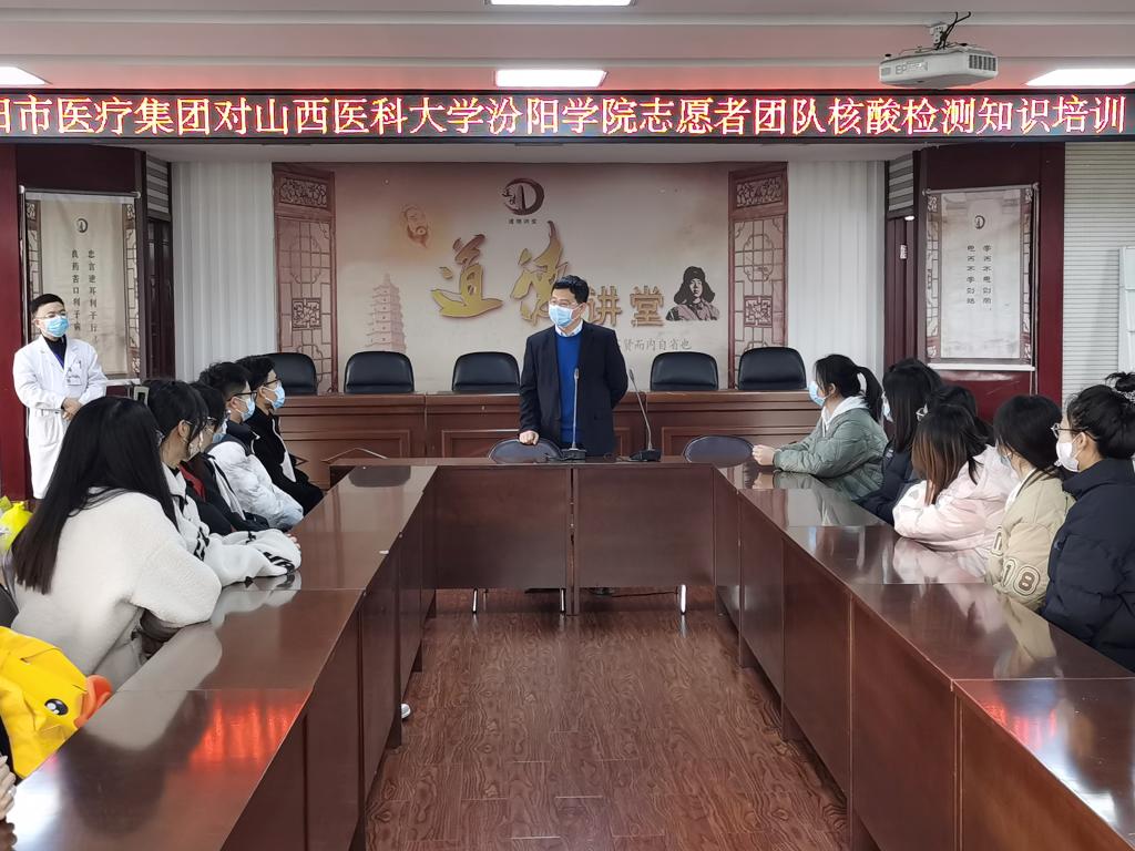 11月23日上午,我校派出第二批PCR检测志愿者赴汾阳市抗疫一线支援。校党委副书记、院长孟小平在养正楼7层会议室主持召开出征动员会。党委宣传部、学生工作部(处)、医学检验系相关人员和医学检验系S72201-3班的40名第二批PCR检测志愿者参加了会议。