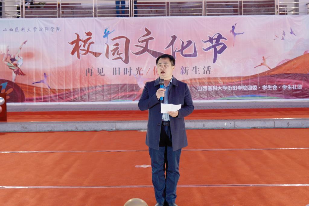 团委书记王健致辞,代表学校团委对组织文化月活动开幕式的师生表示感谢。他指出,开展此次校园文化月系列活动旨在不断优化校园育人环境,强化校园文化阵地建设。他希望,新时代的青年要勇做时代先锋,胸怀“国之大者”,担当使命责任,到新时代、新天地中去施展抱负、建功立业,争当伟大理想的追梦人,争做中华民族伟大复兴的生力军,让青春在祖国和人民最需要的地方绽放绚丽之花。随后,王健书记宣布2023年山西医科大学汾阳学院校园文化月正式开幕。