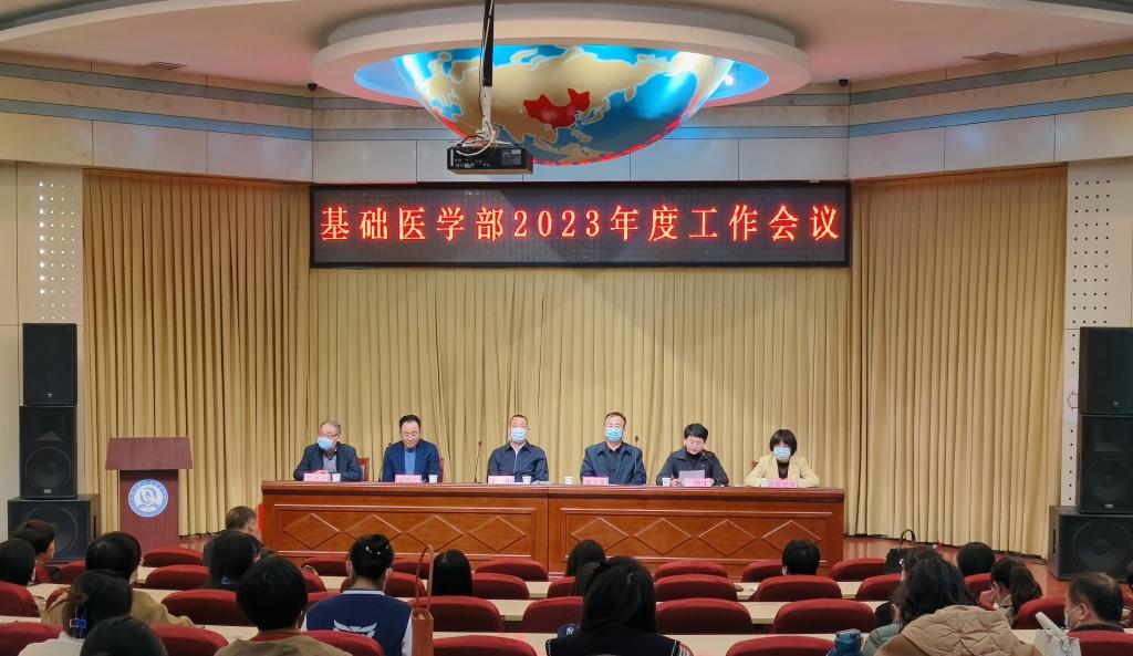 会上,基础医学部主任乔海兵作了题为“夯实基础,启航医技新征程;凝练特色,引领科教再跨越”的2023年度工作报告。报告全面回顾了基础医学部2022年工作,重点总结了在学习宣传贯彻党的二十大精神、疫情防控、教育教学改革、人才引育、课程思政、科学研究等方面取得的突出成绩。报告指出,2023年基础医学部将按照学校第四次党代会确定的“1359”行动方案,深化改革,强化内涵,重点在党建引领、师资队伍建设、学科建设、专业建设、实验室建设、学生管理等方面下功夫,打造品牌项目,推出重点活动,为把我校建成具有区域影响力、特色鲜明、高水平的本科医学院校而努力奋斗。报告强调,做好2023年各项工作,一要把方向、识大局,深入学习宣传贯彻习近平新时代中国特色社会主义思想和党的二十大精神;二要瞄靶心、狠发力,落实立德树人根本任务,践行为党育人、为国育才初心使命;三要守底线,铸信仰,加强师德师风建设;四要强目标、保落实,深入贯彻落实党风廉政建设要求,认真履行全面从严治党的责任,提升党建工作质量,以党建新成效推动事业新发展。