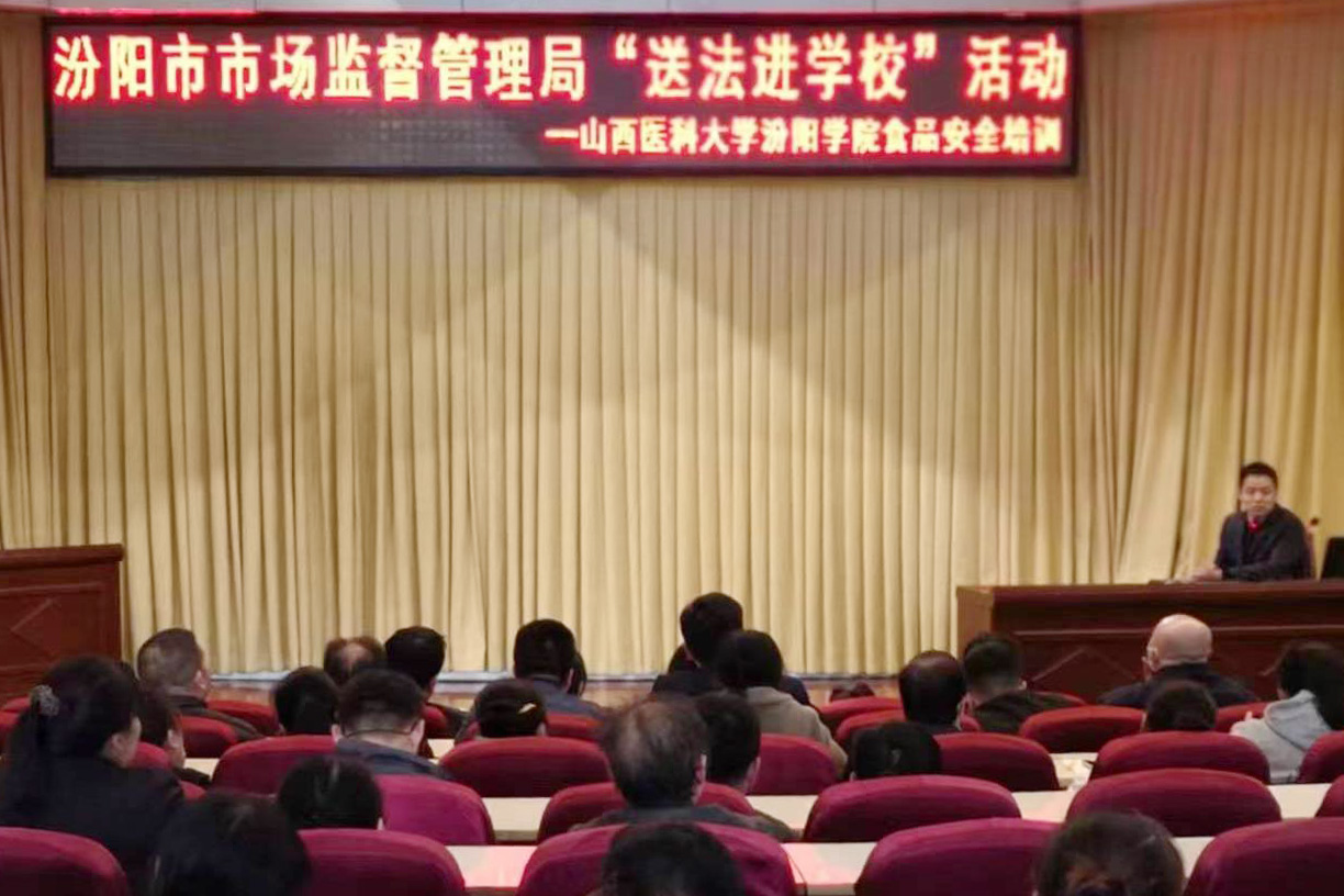 4月7日下午3时,汾阳市市场监督管理局法制科科长王红丽、太和桥所所长王建军、副所长解宏伟及太和桥所全体工作人员在我校学术报告厅围绕食品安全主题开展宣讲。后勤保障处副处长梁勇刚主持了培训会,饮食服务管理中心主任王晋宁、饮食服务管理中心全体工作人员及学生食堂全体工作人员共计180余人参加了培训。