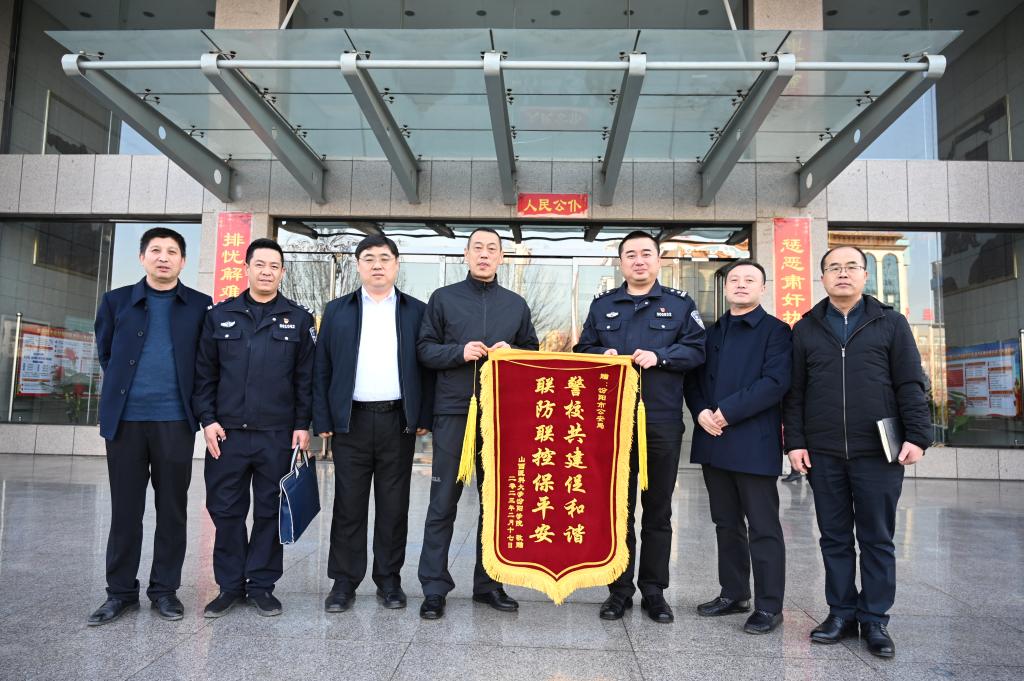 党委副书记王伟代表我校为汾阳市公安局赠送了“警校共建促和谐、联防联控保平安”的锦旗。