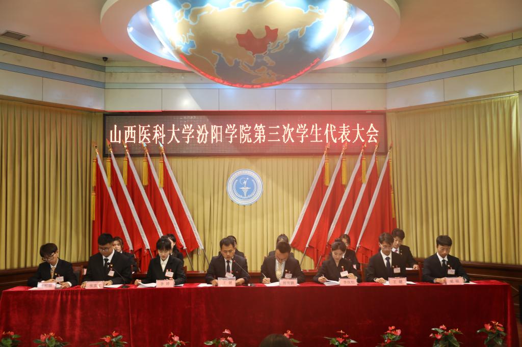 大会听取了校学生会执行主席杨创博作的题为《燃亮青春之火 谱写时代华章》的工作报告,报告总结了校学生会过去一年的主要工作与取得的成绩。大会审议并通过《山西医科大学汾阳学院第三次学生代表大会提案工作报告》、《山西医科大学汾阳学院学生会章程》。大会选举产生了山西医科大学汾阳学院新一届学生会主席团及委员会成员。在第二届主席团成员毕紫凝的主持下,大会通过关于第二届学生会工作报告决议。