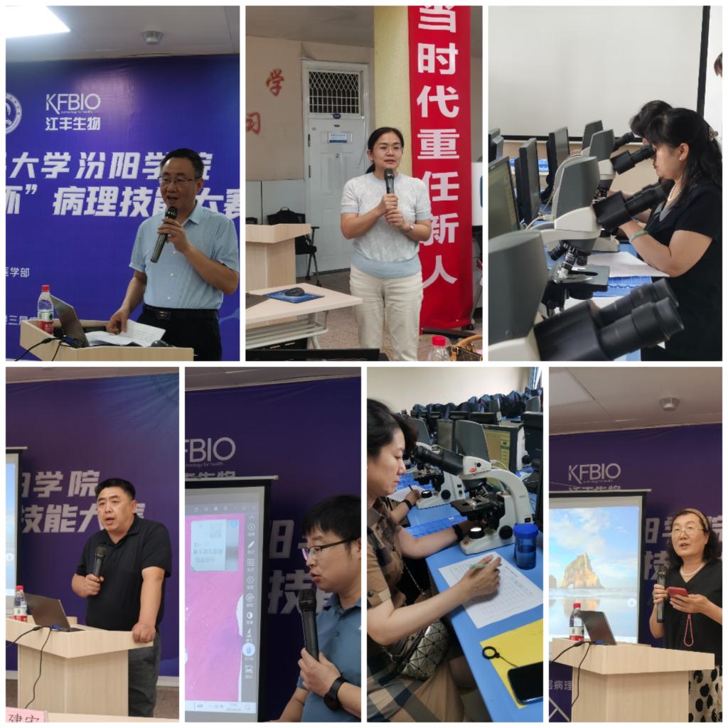 为进一步提升人才培养质量、深化产教融合、检验教育教学成果,营造“以赛促学、以赛促教”的浓厚氛围,6月26日,由基础医学部和山西省汾阳医院病理科承办的我校首届“江丰杯”病理技能大赛在基础医学部诚明楼三层中厅成功举行。本次大赛得到宁波江丰生物信息技术公司的大力赞助。