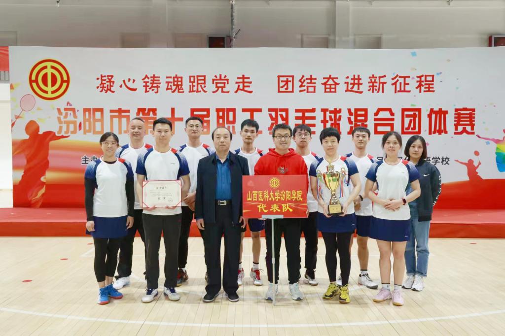 4月26至28日,我校参加了由汾阳市总工会主办、市羽毛球协会承办的以“凝心铸魂跟党走 团结奋进新征程”为主题的第十届职工羽毛球混合团体赛,并荣获团体赛冠军。