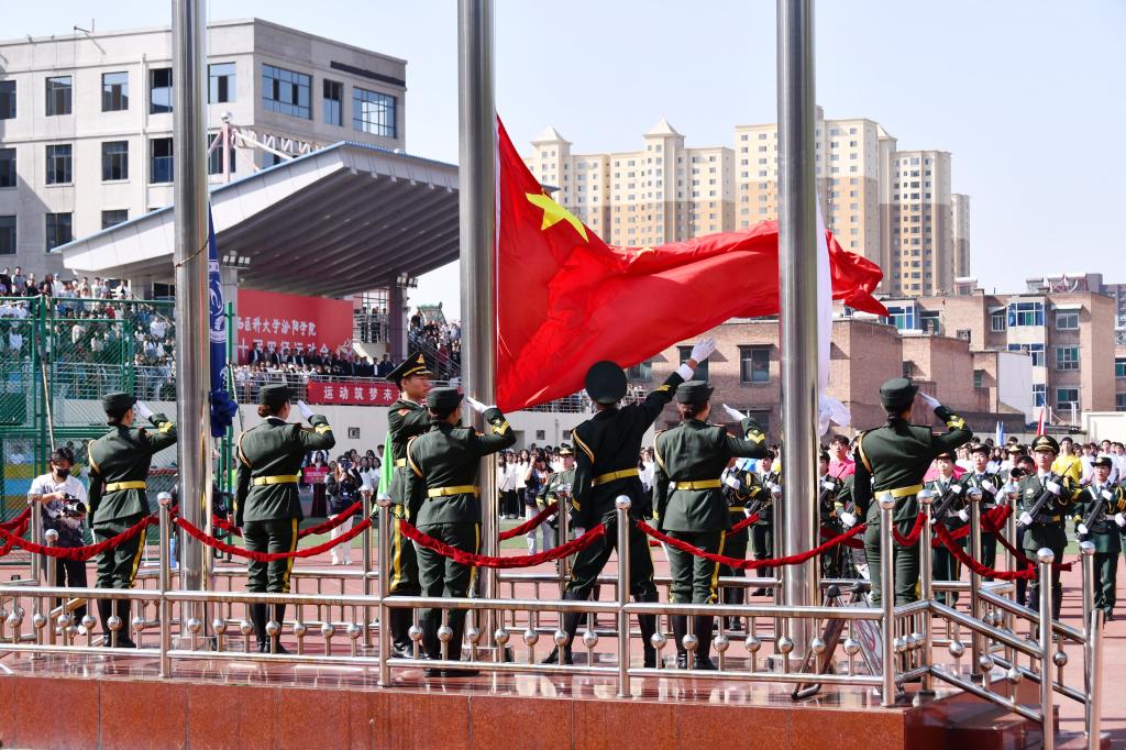 伴随着雄壮的《运动员进行曲》,国旗、校旗、会旗、会徽、宣传、鲜花、彩旗方队依次入场,随后是裁判员、教工和学生代表队。他们迈着铿锵有力的步伐、喊着高亢嘹亮的口号、精神抖擞地走过主席台。激情飞扬、创意新颖的队列表演赢得在场领导和师生们的阵阵掌声。这是学校精神的一次大体现,也是师生风貌的一次大展示。入场后,是隆重的升旗仪式,在雄壮的国歌声中,五星红旗冉冉升起;在激昂的校歌声中,校旗和第三十届田径运动会会旗缓缓升起。