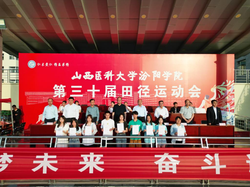 运动筑梦未来,奋斗谱写华章。5月12日上午,山西医科大学汾阳学院第三十届田径运动会开幕式在校体育场隆重举行。校党委书记闫敬来,党委副书记、院长孟小平,山西省汾阳医院党委书记郭任维、院长郭建平,校党委副书记王伟,党委委员、纪委书记尹锡昊,党委委员、副院长陈振文和李荣江,各教学系部党政领导及相关职能部门负责人,全校师生参加了开幕式。党委委员、副院长陈振文主持了开幕式。