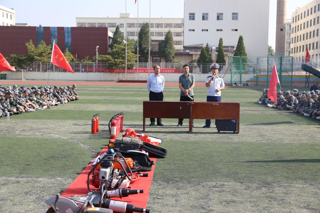 为提高2023级新生的消防安全意识和自救逃生能力,9月12日,我校保卫处联合汾阳市消防救援大队和校学生处开展了消防知识培训和应急演练活动。校保卫处处长李玉明,汾阳市消防救援大队参谋长张怀清,校学生处处长常明亮、副处长侯泽,军训总教官任志刚及新生班级辅导员、全体新生参加了活动。
