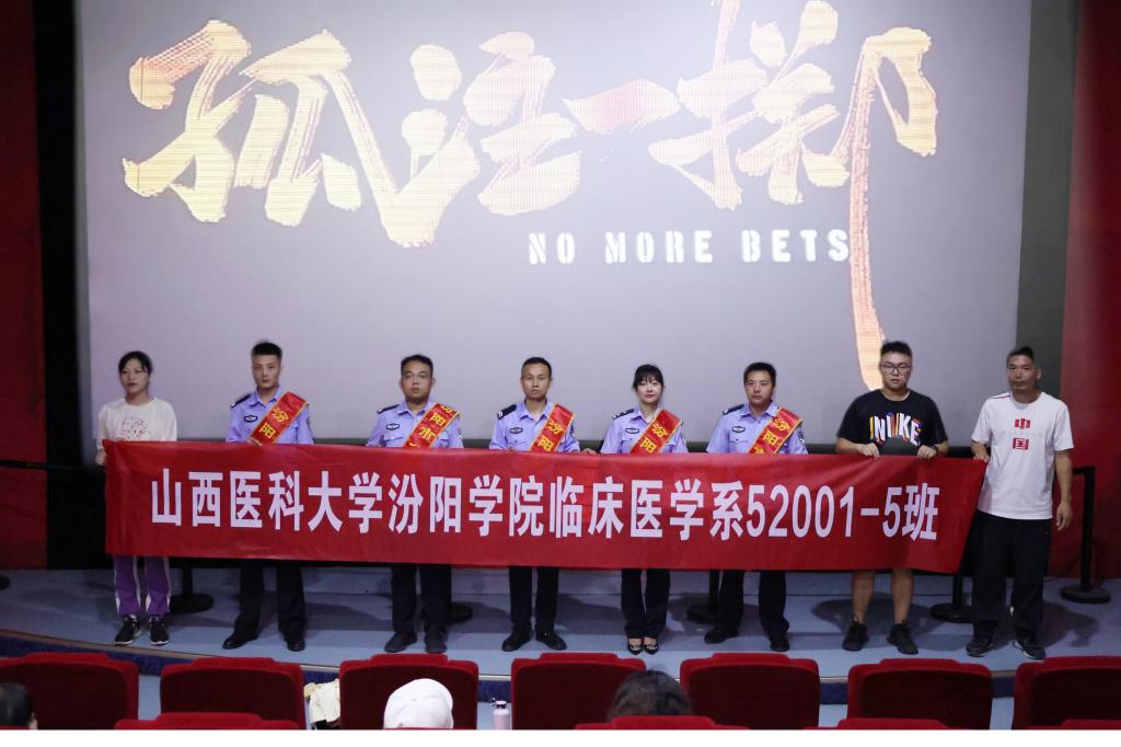 为进一步增强在校学子的防诈骗意识及自我保护能力,9月2日,在校保卫处和临床医学系的支持下,临床医学系52001-5班特邀汾阳市公安局辰北派出所开展了“反诈同心 警校同行”宣传教育活动,一同走进影院观看了反诈主题电影《孤注一掷》,并进行了反诈宣传教育活动。