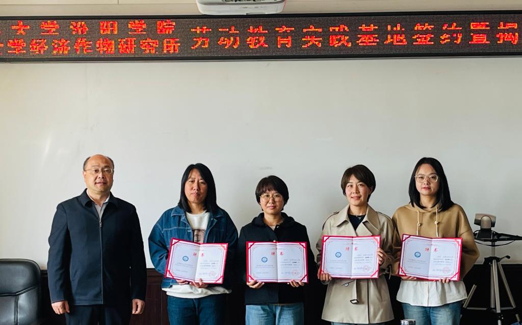 10月16日,校党委委员、副院长陈振文,教务处处长魏建宏等一行来到山西农业大学经济作物研究所劳动实践基地,与山西农业大学经济作物研究所举行了我校劳动教育实践基地签约和挂牌仪式。陈振文副院长为9名兼职教师颁发了聘书。陈振文副院长希望,双方今后能进一步加大合作力度,根据国家人才培养需求、遵循高等教育教学规律,坚持立德树人根本任务,共同构建劳动教育体系,建立劳动实践育人长效机制,扩展劳动教育内涵,提高以劳育德成效,共同培养堪当强国建设、民族复兴重任的时代新人贡献力量。