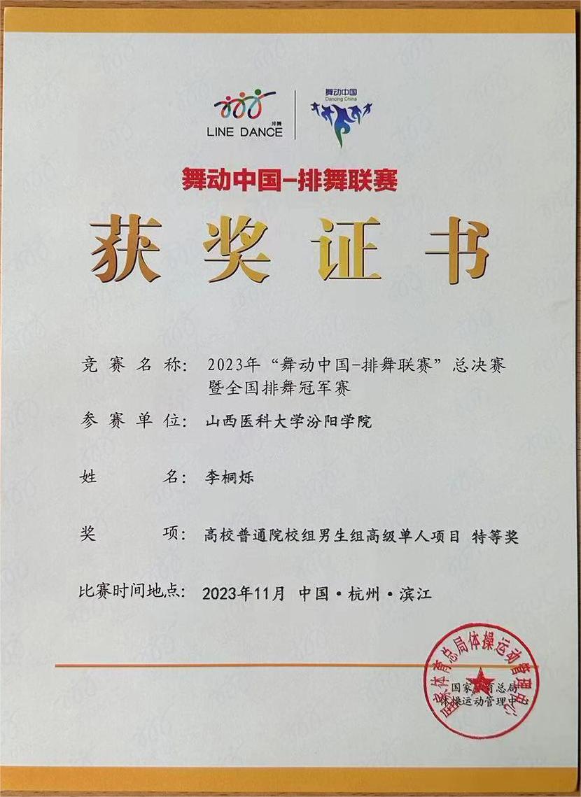 这次比赛共有来自全国的23个省(自治区、直辖市)的54个城市、214支队伍、3244名选手参赛,同时这也是自2013年举办总决赛以来,线下参赛⼈数和参赛队伍最多的⼀届。山西省有4个学校的代表队参赛,我校健美操代表队通过了山西省排舞比赛荣获两项特等奖,获得全国参赛资格。