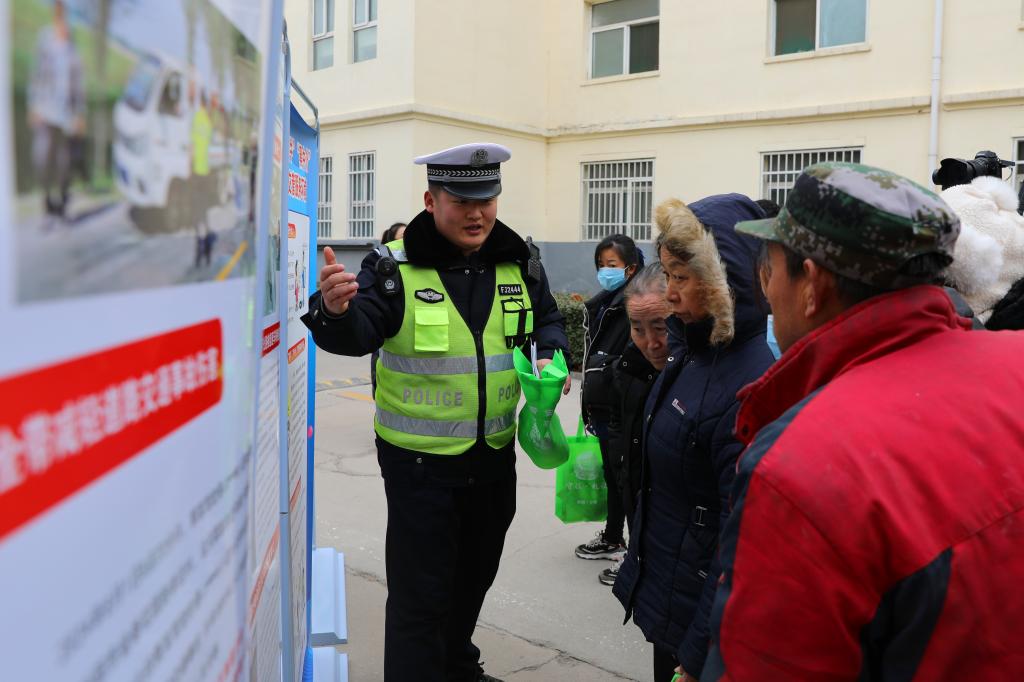 活动特邀汾阳市公安局交警大队宣教科冯冠豪科长和骑警中队的警察同志结合交通事故案例,围绕师生交通安全意识与校园交通秩序等方面进行现场宣讲,为师生员工分发交通安全宣传页,张贴宣传海报,通过图文并茂的方式,把交通安全知识传播到校园的每个角落、传递给每个师生。