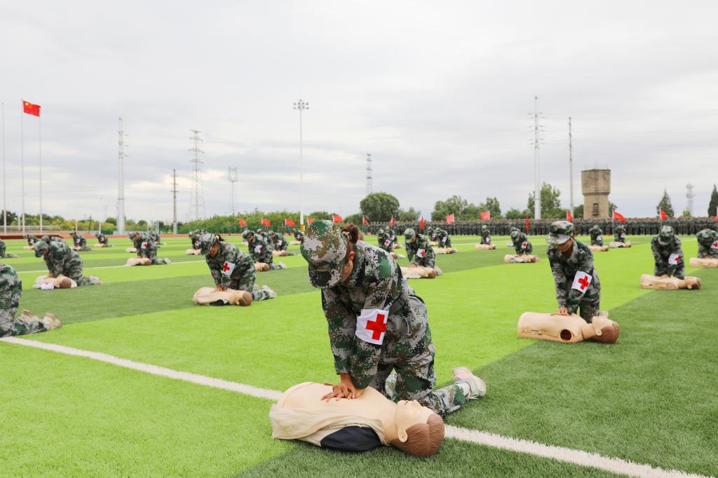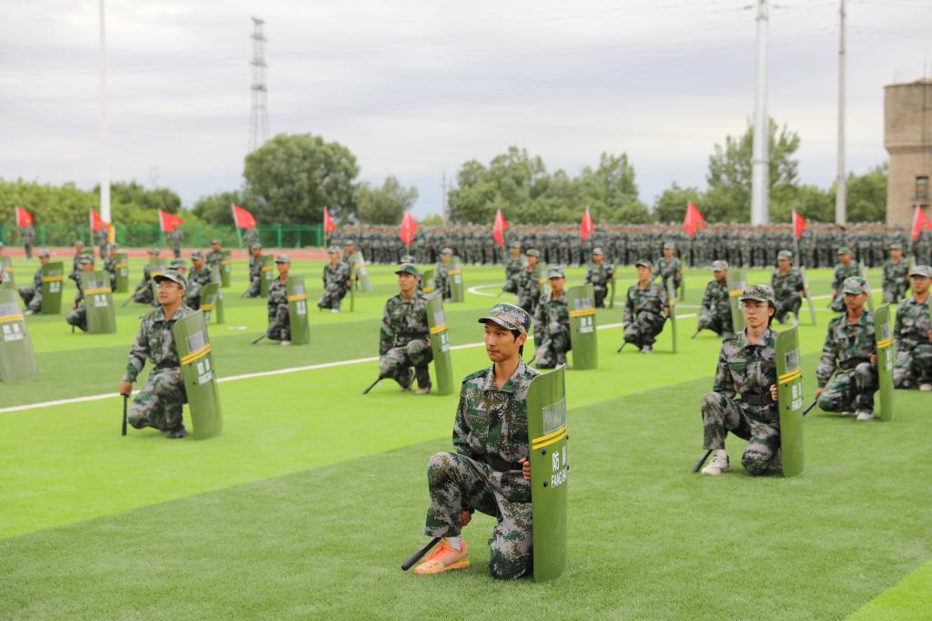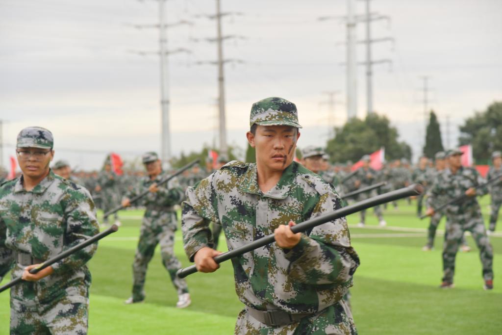 2024级新生参训方队进行了分列式、匕首操、刺杀操、应急棍、警棍盾牌操、战地救护、持枪战术等,展现出了团结协作、奋发向上的精神风貌。