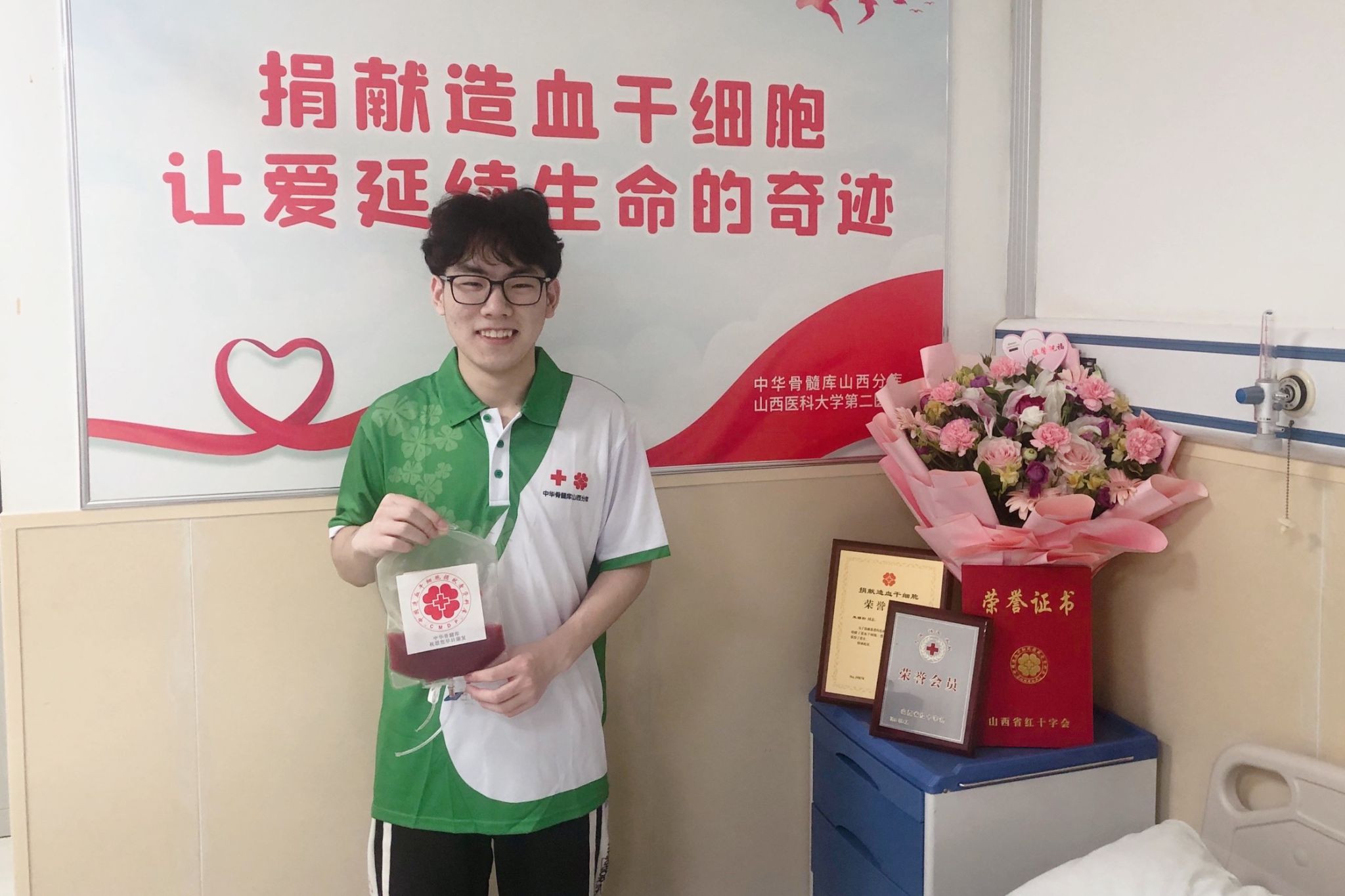 2023年12月9日,吕梁市中心血站献血车开进了校园。还是大一新生的朱瑞轩积极参加了无偿献血活动。当时工作人员讲解的造血干细胞知识给他留下了深刻的印象。他觉得留下一管血样,如果有患者配型成功就能救人了。正是这份善意和责任,让朱瑞轩同学毅然登记加入了中华骨髓库,成为了一名造血干细胞捐献志愿者,从此埋下了“生命的种子”。