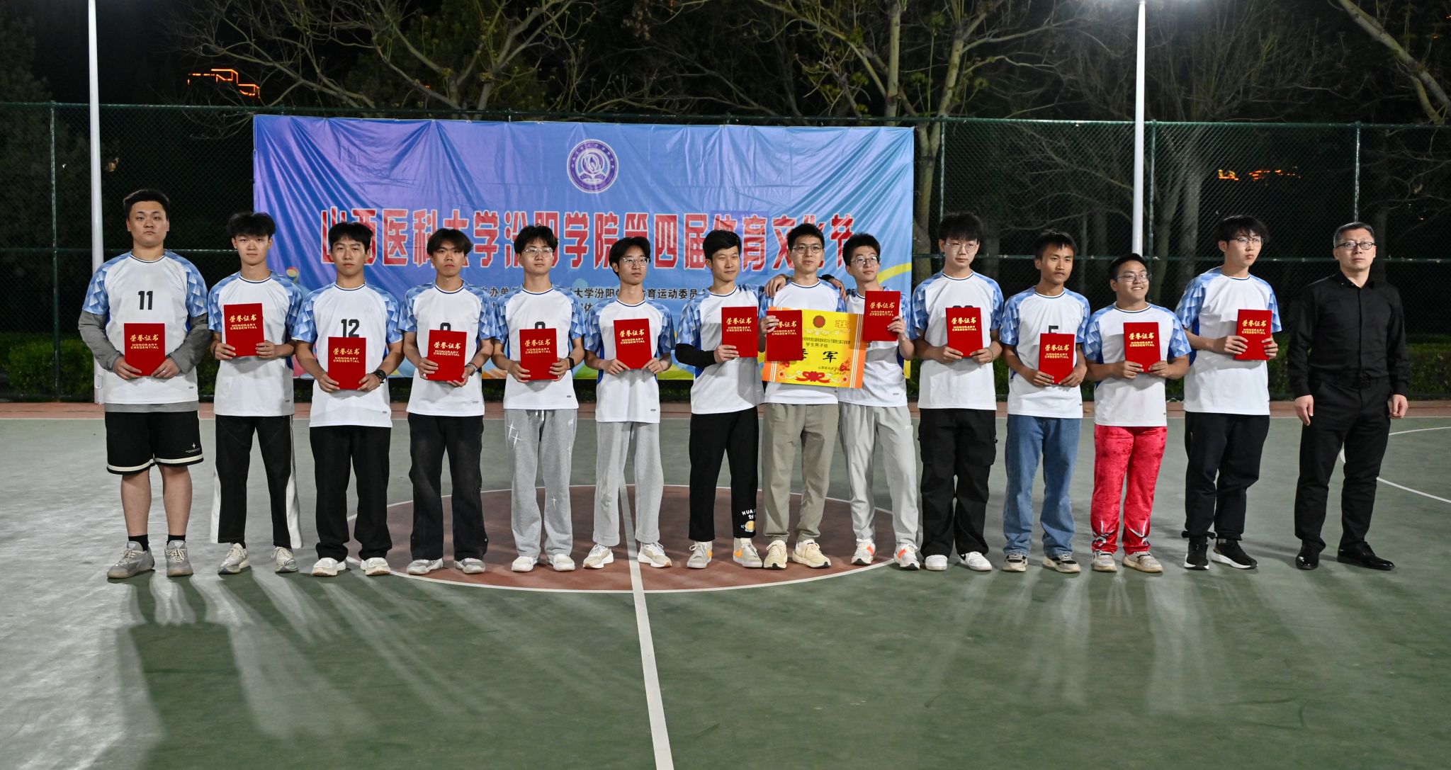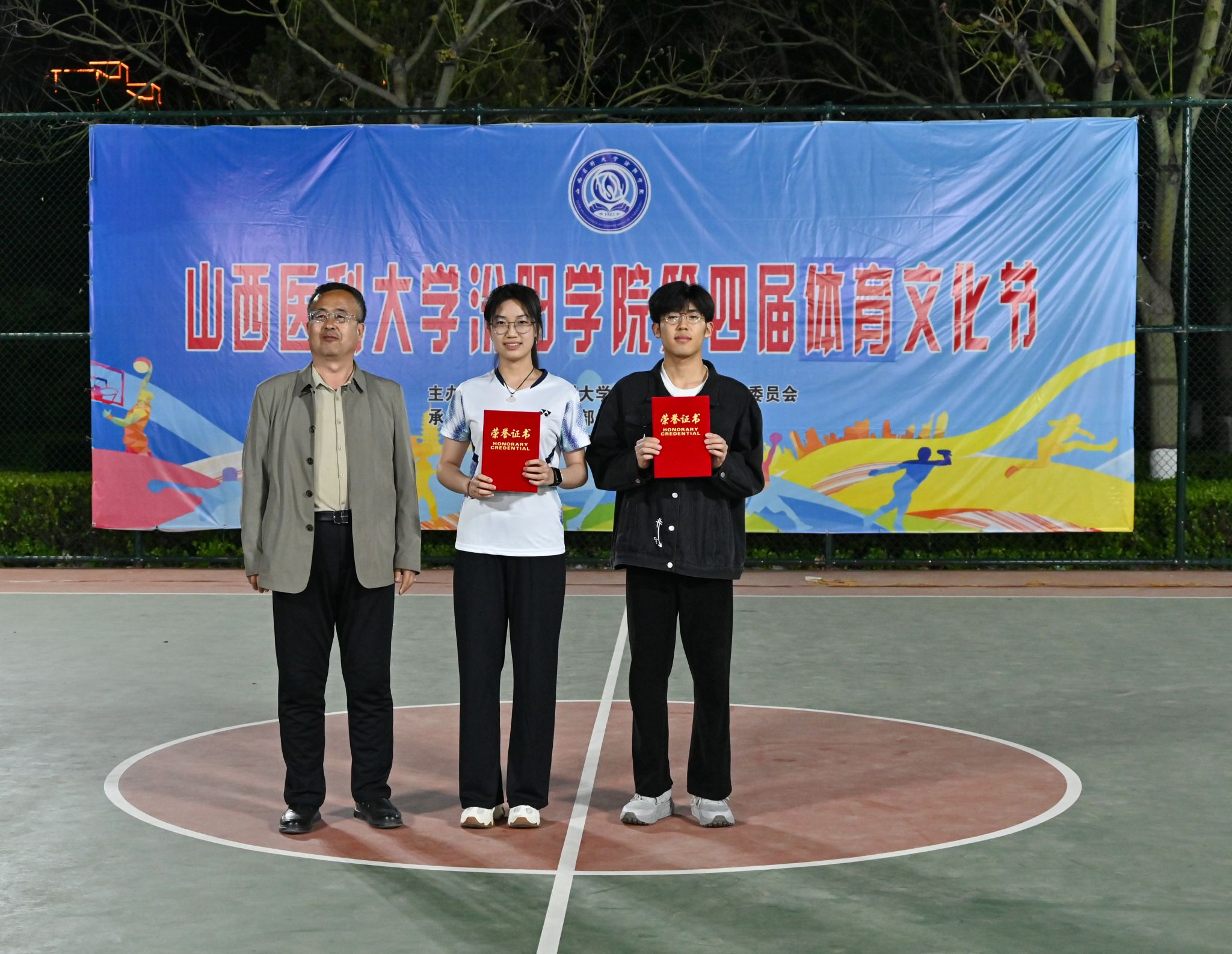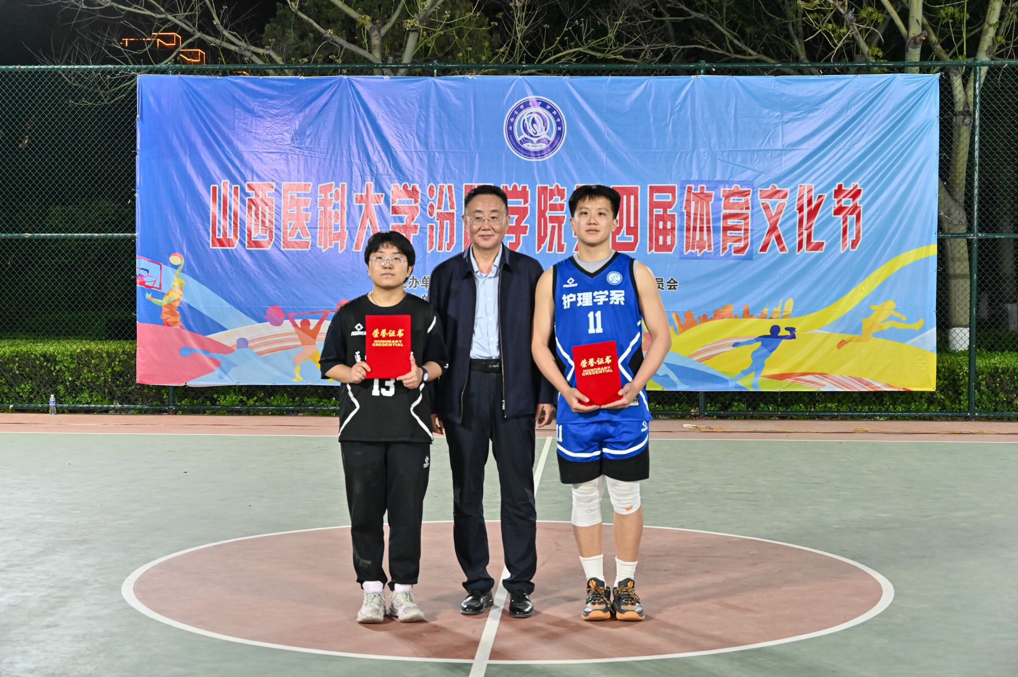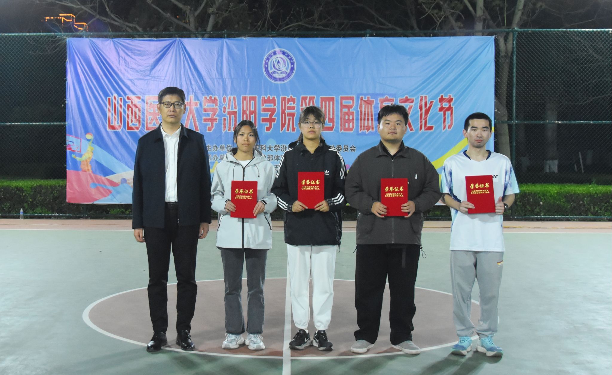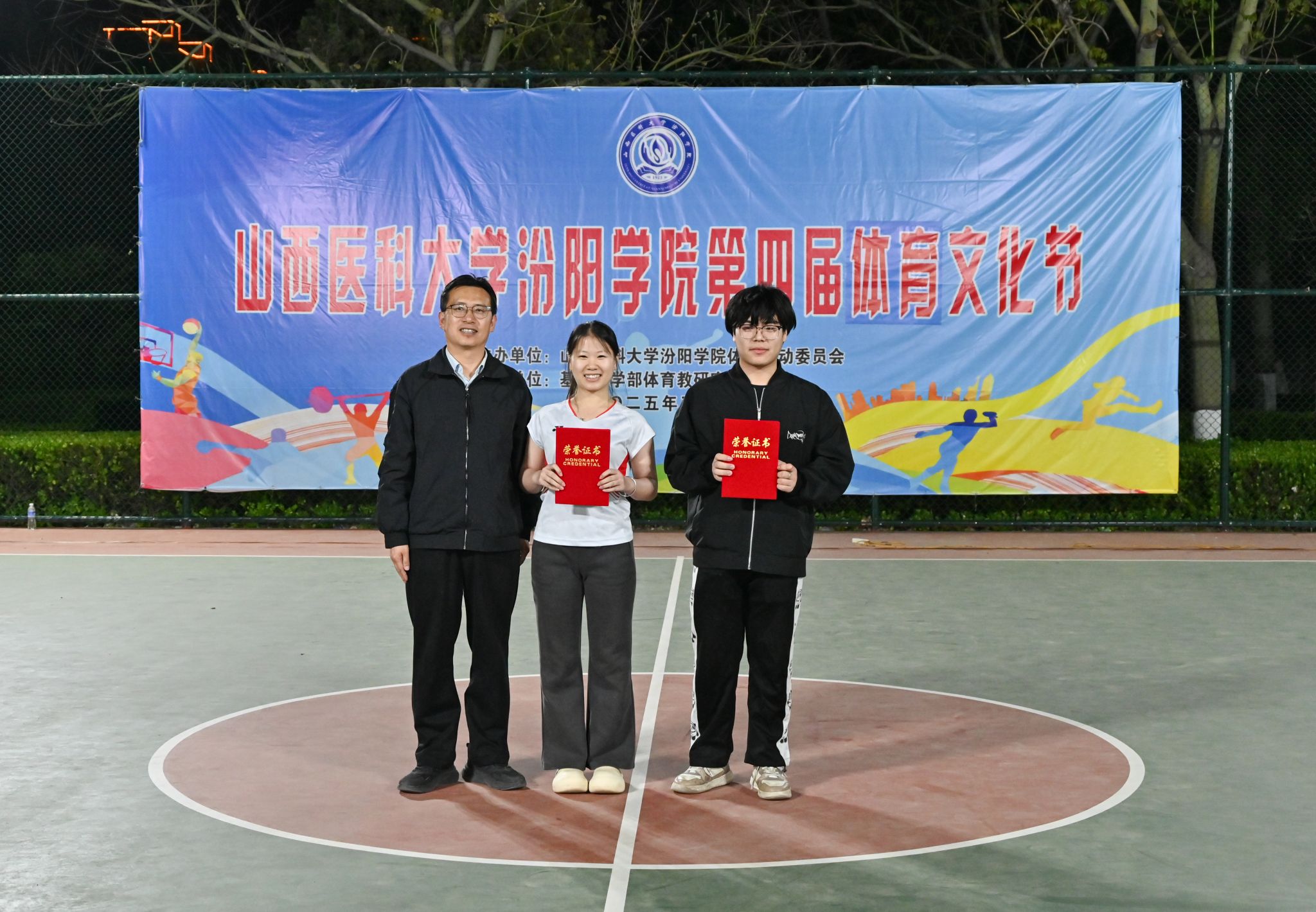 在校体育运动委员会的统筹指导和各系部、相关职能部门的积极配合、全校师生的热情参与和共同努力下,基础医学部体育教研室精心组织的我校第四届校园体育文化节顺利完成各项赛事,圆满落下帷幕。4月23日晚,闭幕式在篮球场隆重举行。校党委委员、副院长、体育运动委员会主任陈振文,体育运动委员会副主任、基础医学部主任乔海兵,各系部党总支书记、副书记,保卫处、学生工作部、团委等相关部门负责同志出席了闭幕式。