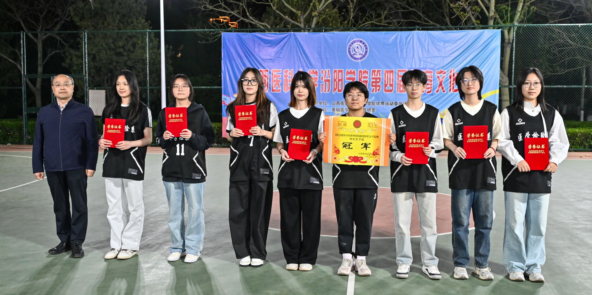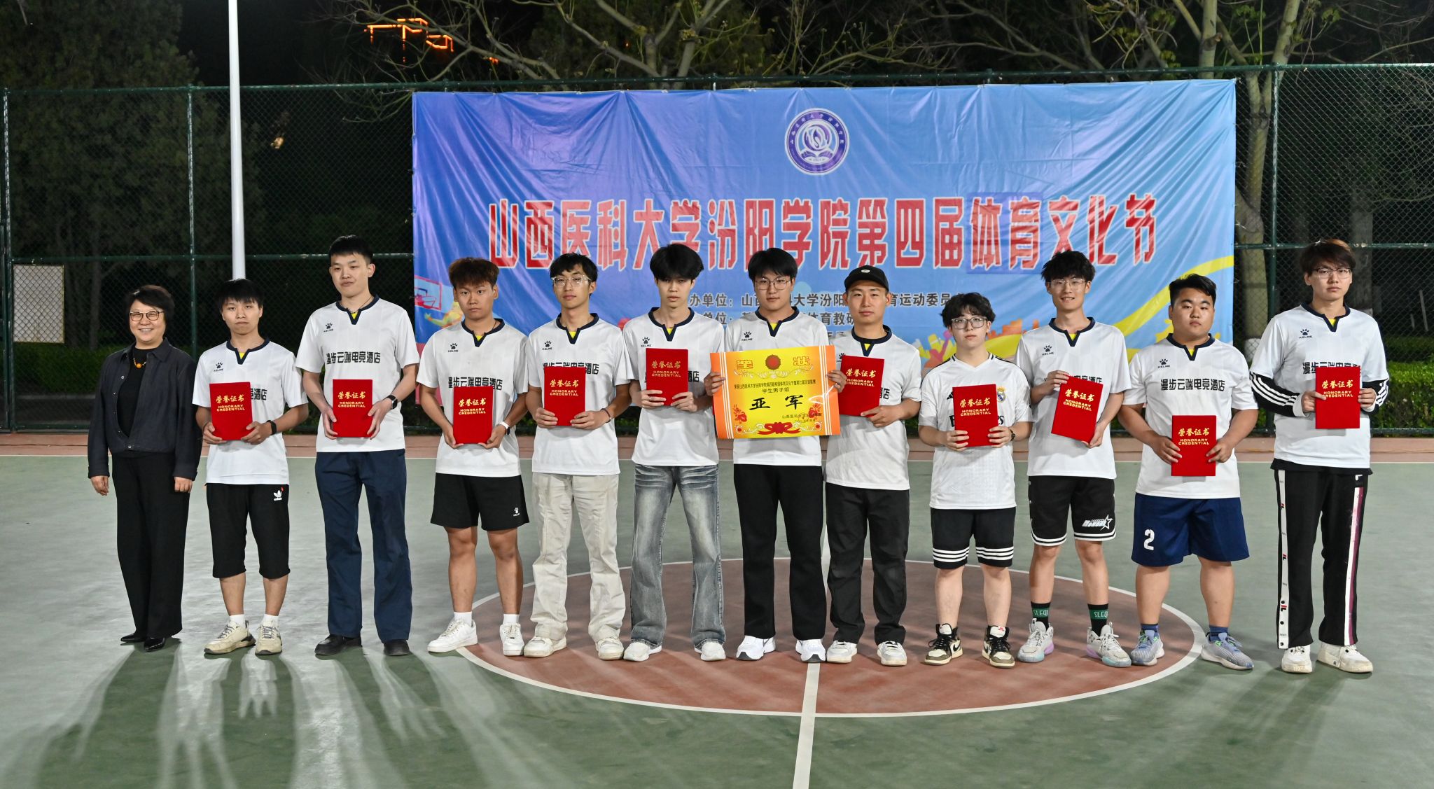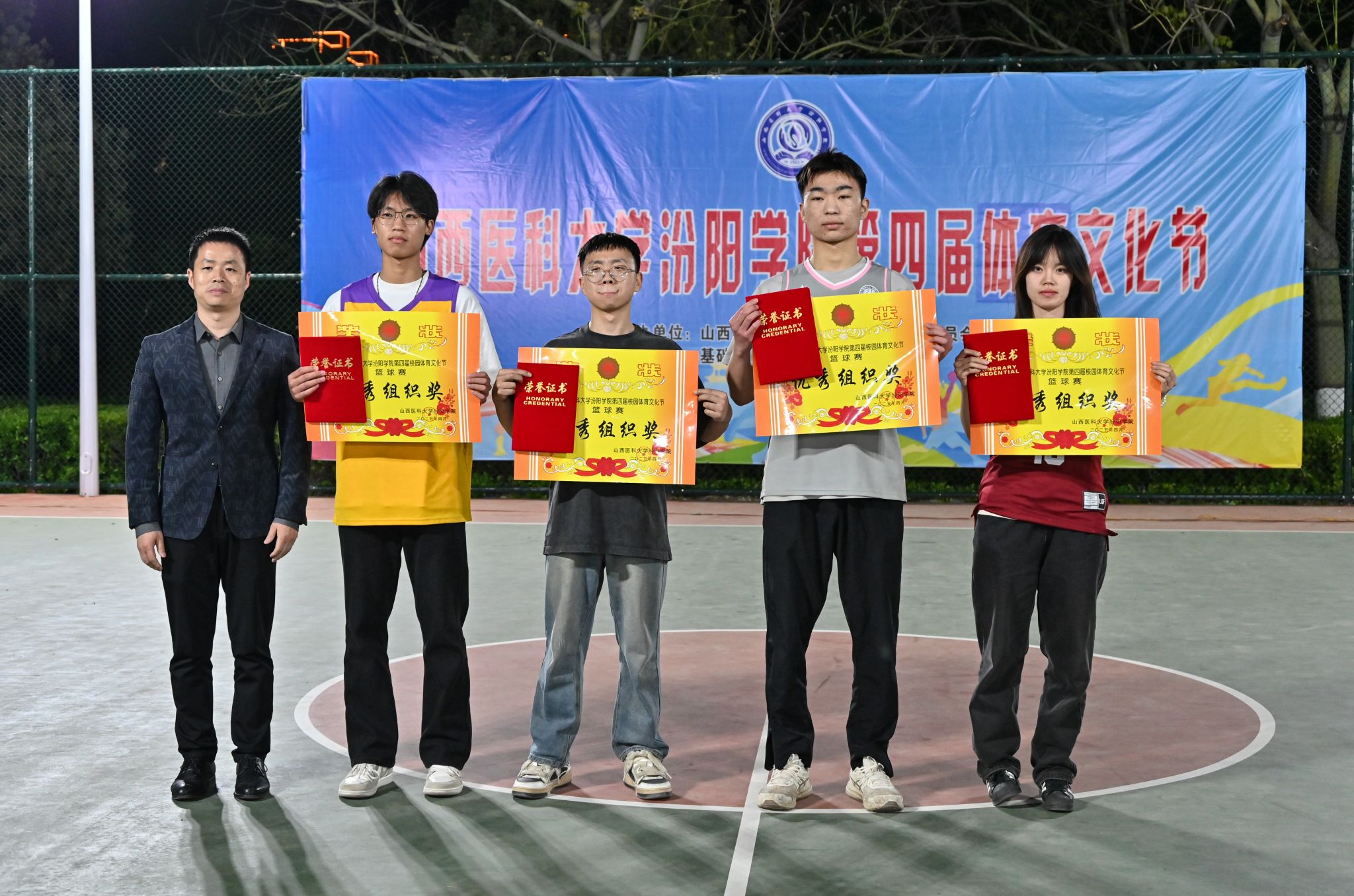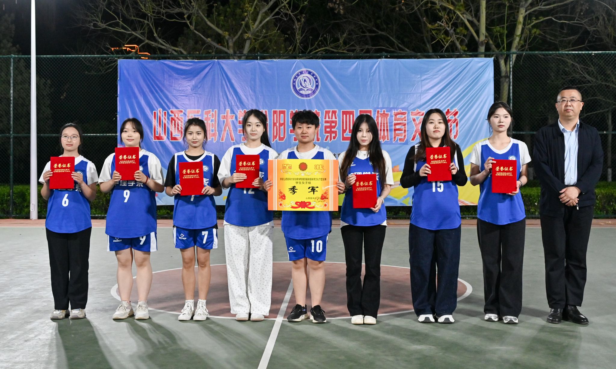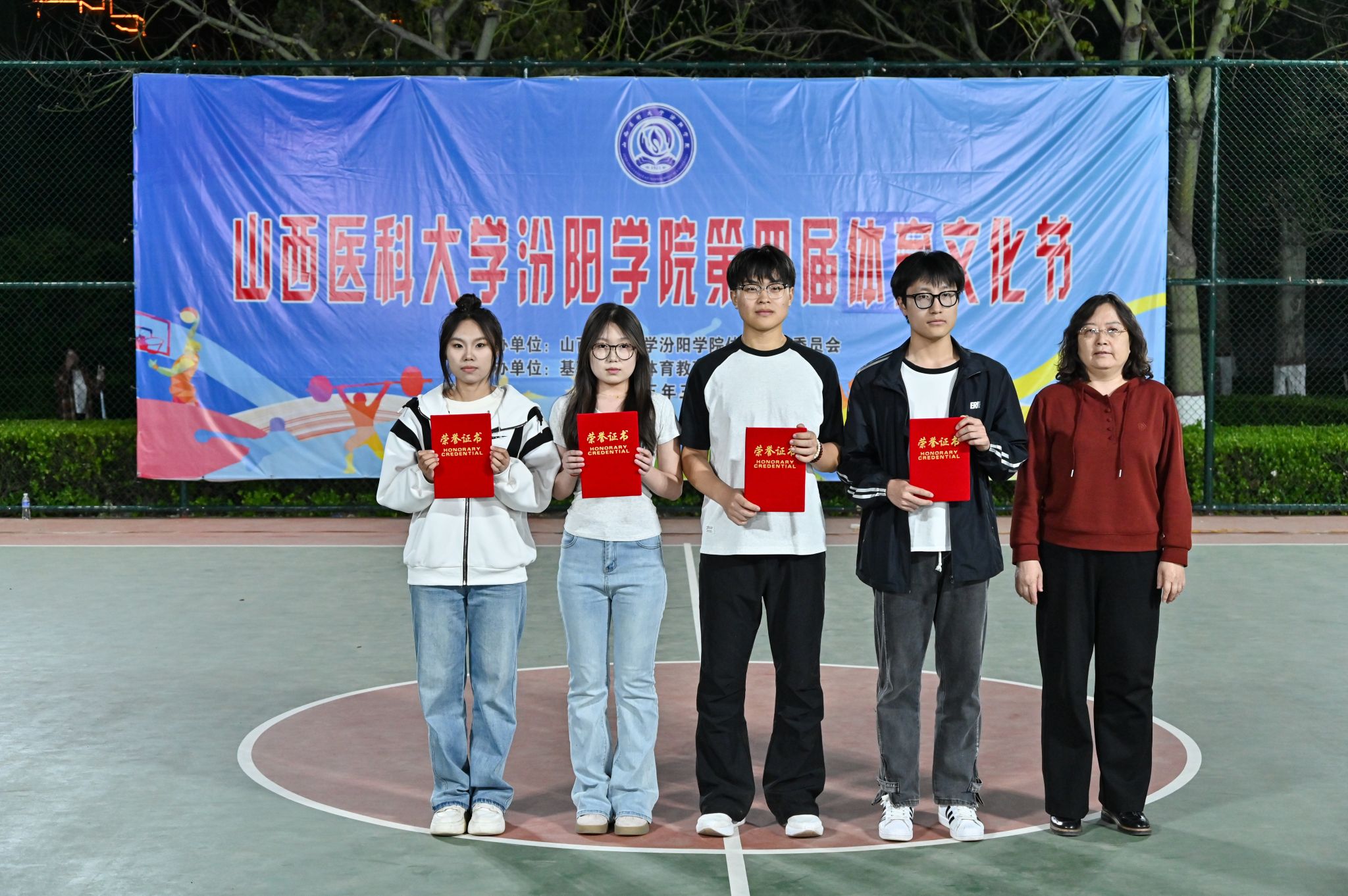 在校体育运动委员会的统筹指导和各系部、相关职能部门的积极配合、全校师生的热情参与和共同努力下,基础医学部体育教研室精心组织的我校第四届校园体育文化节顺利完成各项赛事,圆满落下帷幕。4月23日晚,闭幕式在篮球场隆重举行。校党委委员、副院长、体育运动委员会主任陈振文,体育运动委员会副主任、基础医学部主任乔海兵,各系部党总支书记、副书记,保卫处、学生工作部、团委等相关部门负责同志出席了闭幕式。
