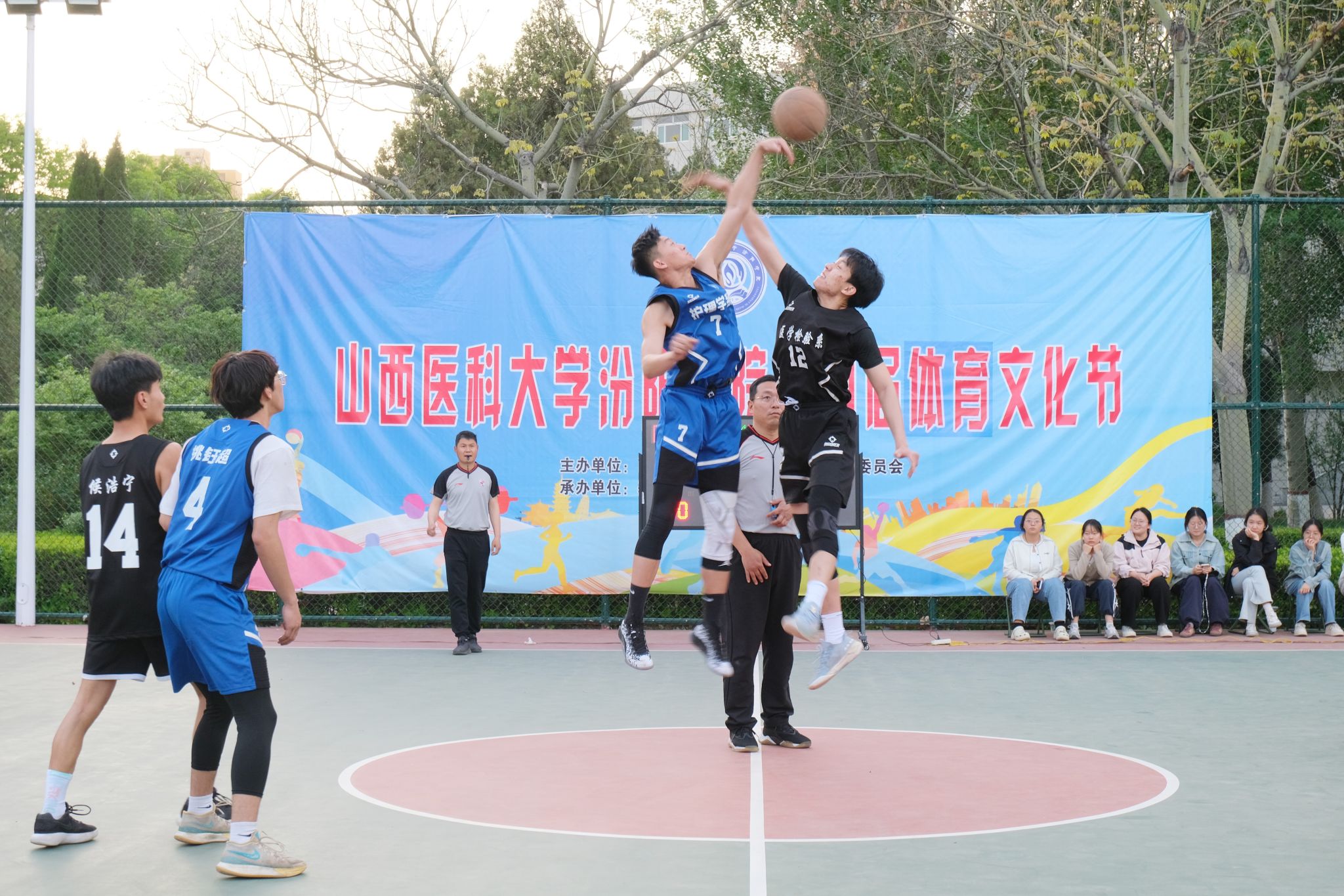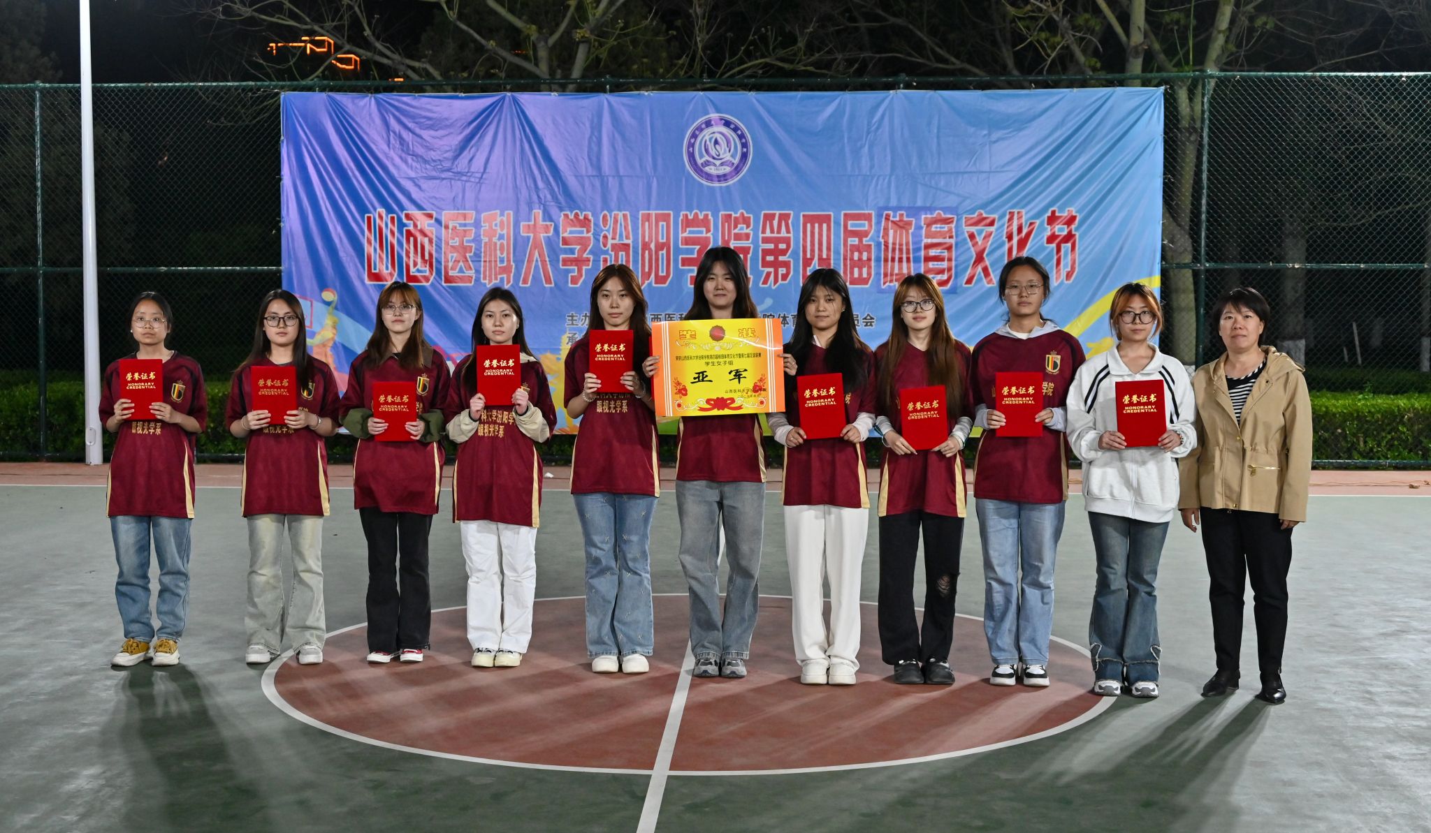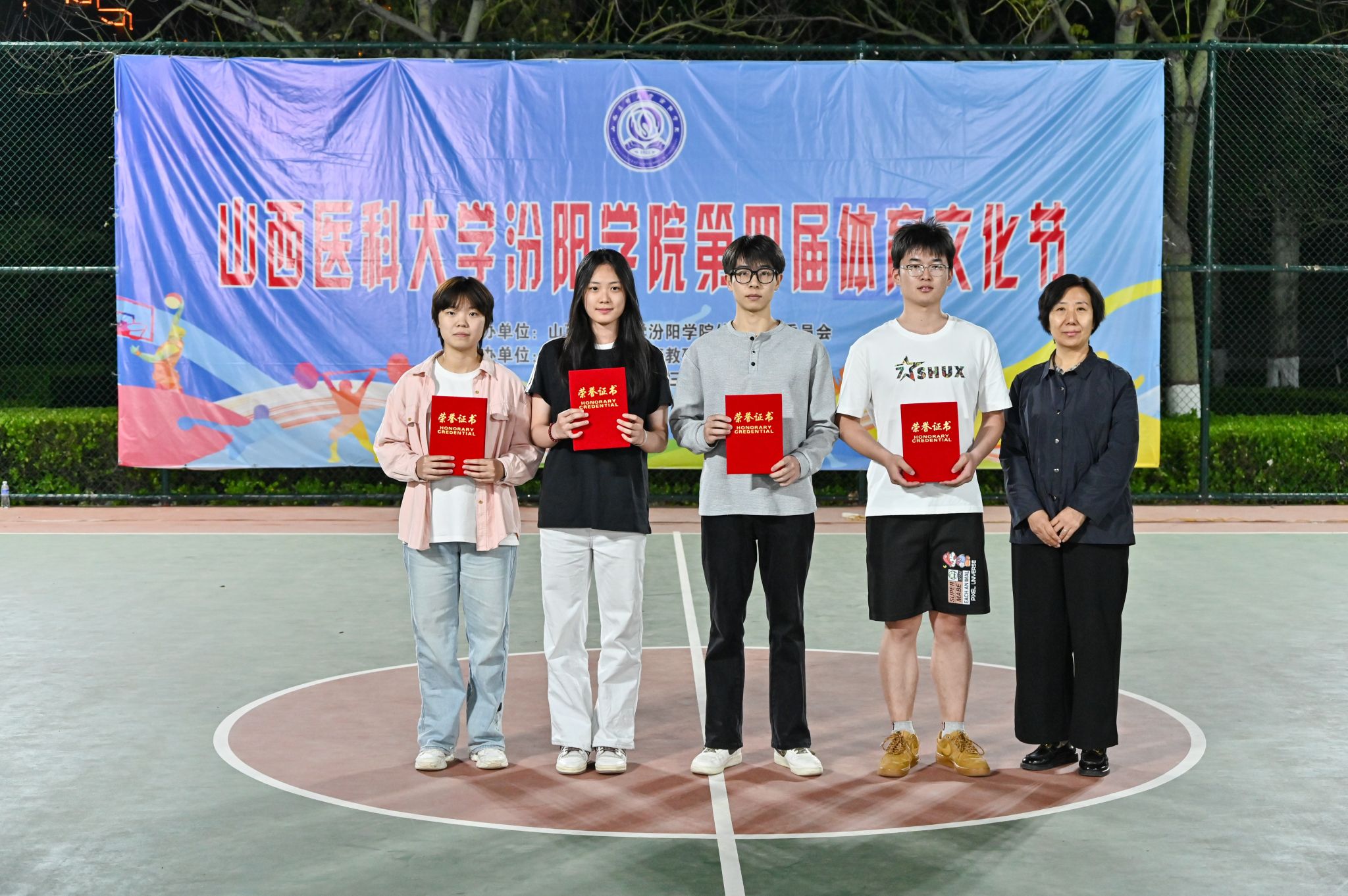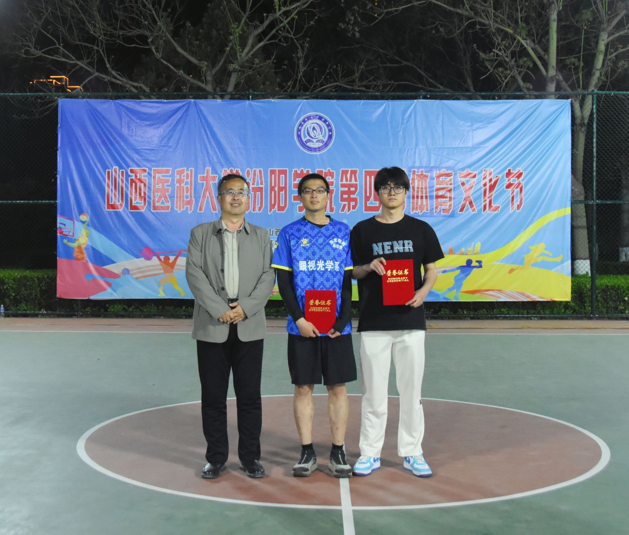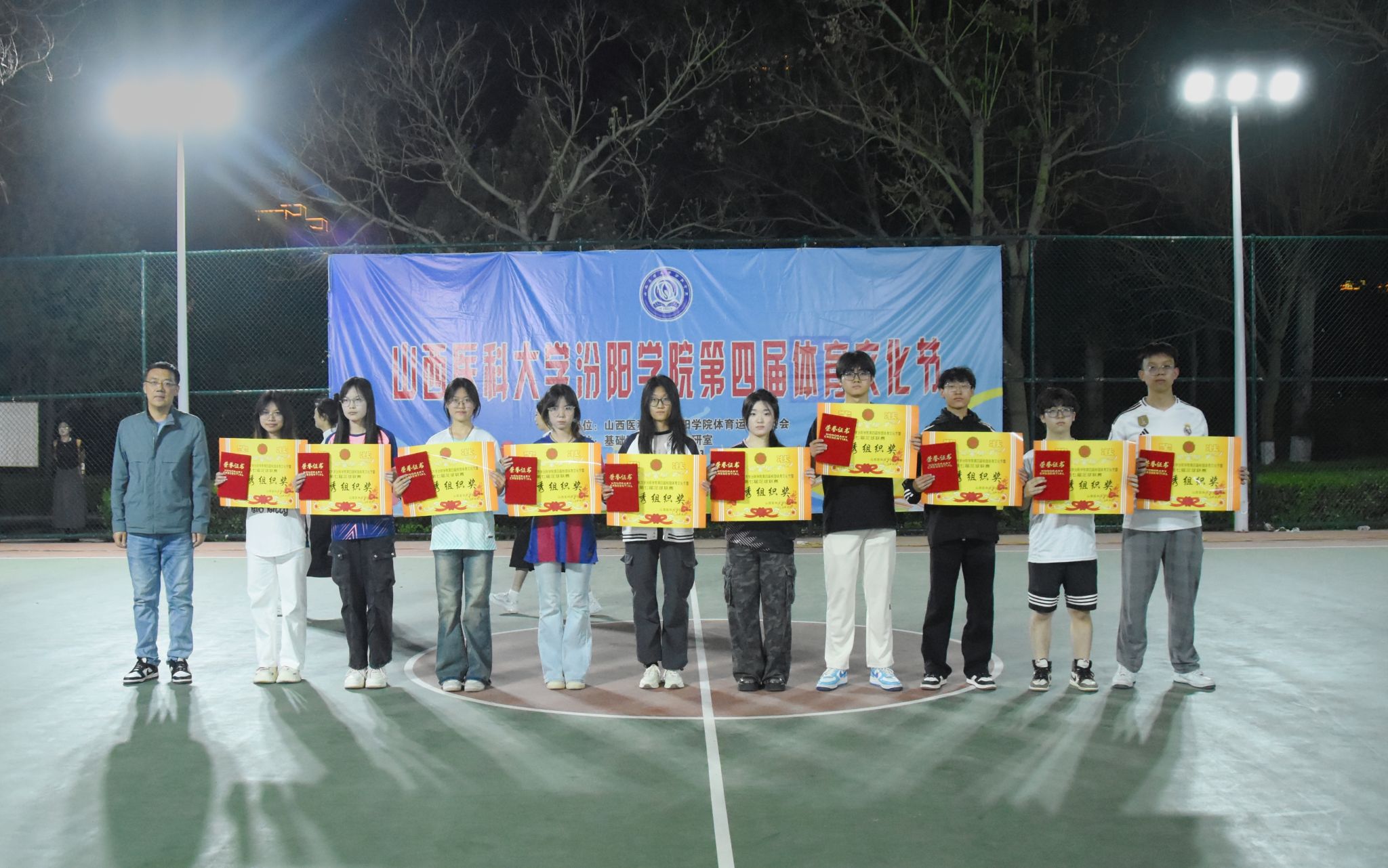 在校体育运动委员会的统筹指导和各系部、相关职能部门的积极配合、全校师生的热情参与和共同努力下,基础医学部体育教研室精心组织的我校第四届校园体育文化节顺利完成各项赛事,圆满落下帷幕。4月23日晚,闭幕式在篮球场隆重举行。校党委委员、副院长、体育运动委员会主任陈振文,体育运动委员会副主任、基础医学部主任乔海兵,各系部党总支书记、副书记,保卫处、学生工作部、团委等相关部门负责同志出席了闭幕式。