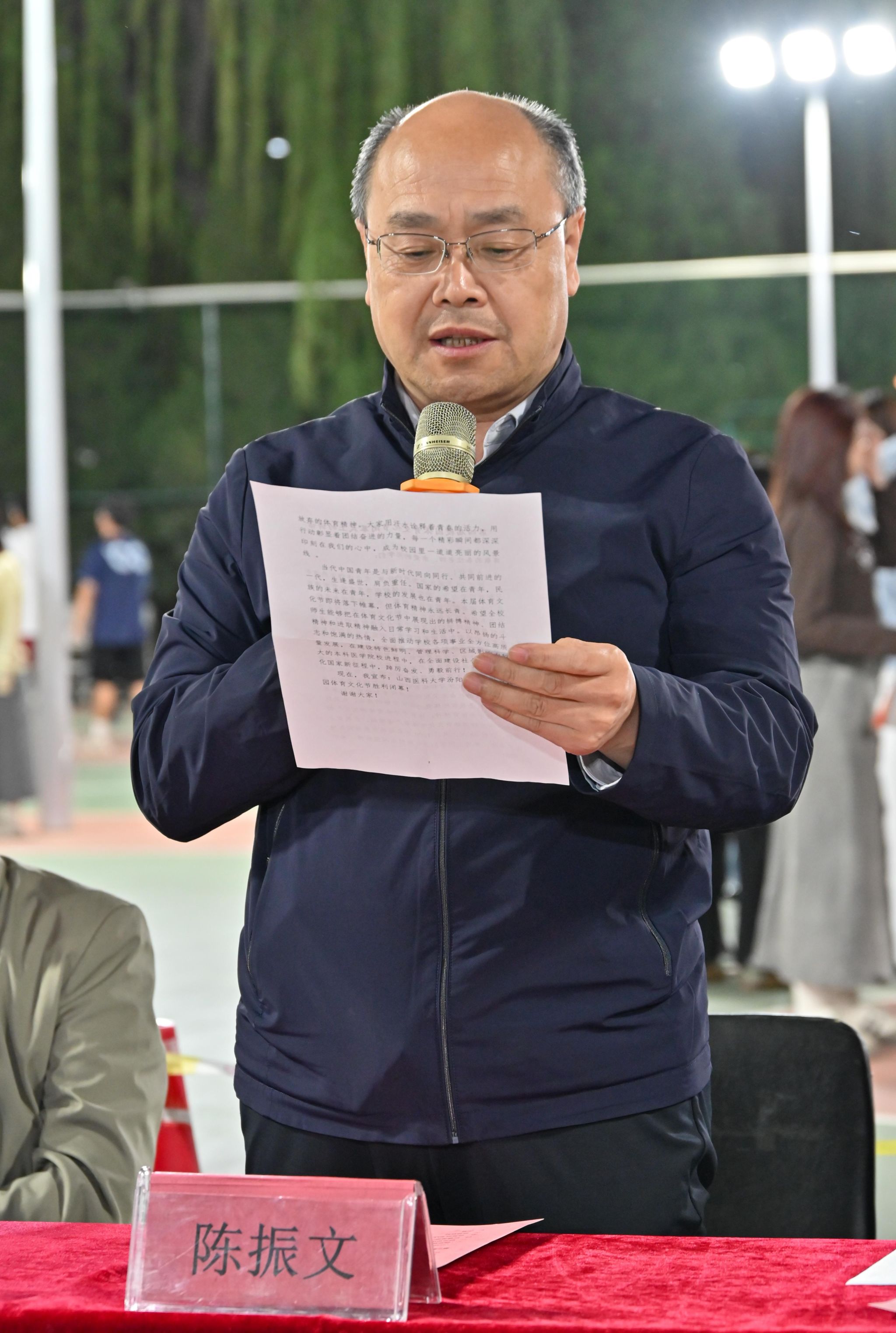 党委委员、副院长、体育运动委员会主任陈振文为闭幕式致辞,对本次体育文化节的成功举办给予充分肯定,对获奖运动员表示祝贺,对参与赛事组织、服务的工作人员表示感谢。他指出,学校一直以来高度重视体育工作,持续深化体育教学改革,推动高质量体育教育,坚持“以体培人、以体启智、以体育人”,大力开展阳光体育活动,推动校园体育、竞技体育的协调发展,我校师生多次在国家级、省级体育大赛中斩获佳绩。他寄语全校师生要把在体育文化节中展现出的拼搏、团结和进取精神融入日常学习和生活中,以昂扬的斗志和饱满的热情,全面推动学校各项事业全方位高质量发展。
