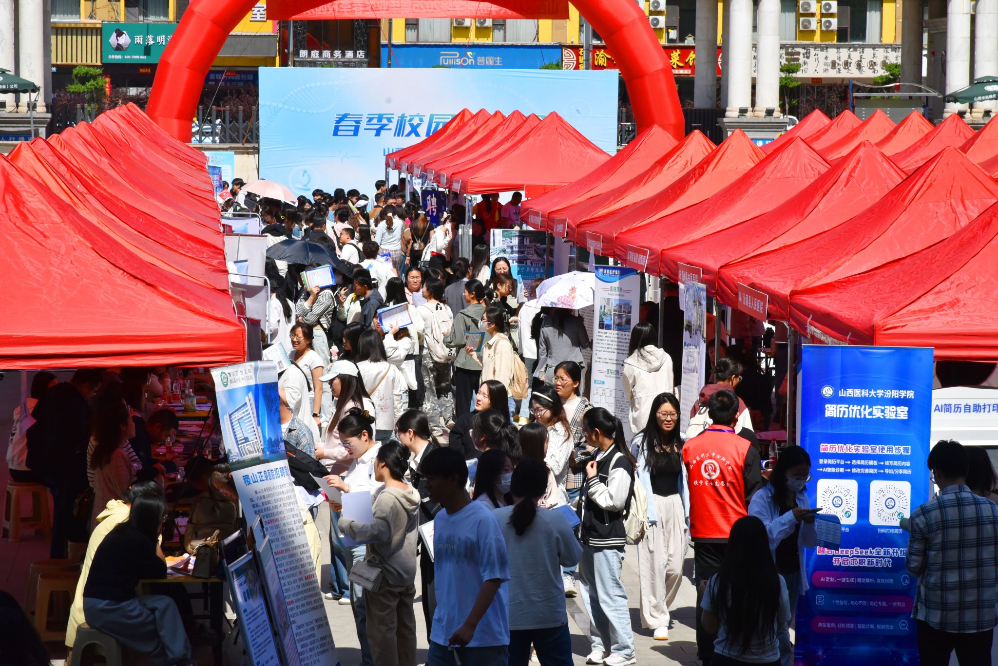 为深入贯彻党中央、国务院关于做好高校毕业生就业工作的决策部署,抢抓春招黄金期,扎实推进2025届高校毕业生“春季促就业攻坚行动”,全力促进毕业生高质量充分就业,4月28日,我校举办了2025届毕业生春季校园双选会。本次双选会吸引了来自北京、天津、江苏、新疆、山东及山西等8省市90余家用人单位参会,提供就业岗位1800余个,并同步开展专场宣讲、专场面试10余场。2000余名毕业生到场求职,3500余名在校学生现场进行职业生涯及就业形势体验。